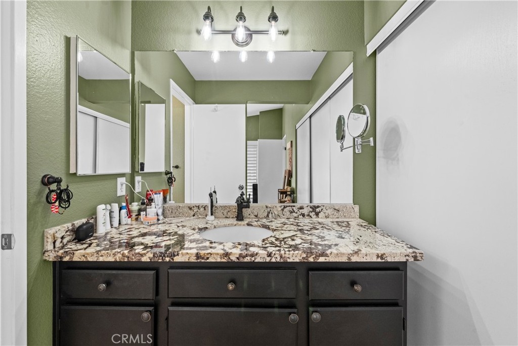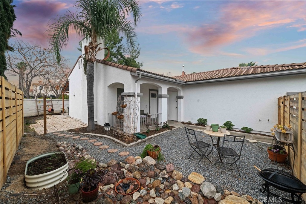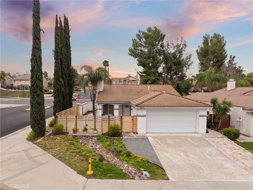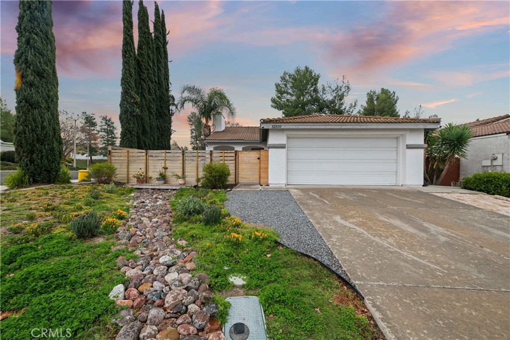 Welcome to this beautiful Vail Ranch single level home on a corner lot with NO HOA! Pulling up to the driveway, you will immediately love the dry riverbed, new wooden fence, well maintained landscaping, and cute courtyard which is perfect for your morning coffee. Walking through the front door you will find an open concept layout with a sizable kitchen, new stainless steel appliances and shutters throughout. The two guest bedrooms are both very spacious and share a large renovated guest bathroom. The master suite has a large vanity and closet. Moving into the backyard, you will find an outdoor patio with string lights , a garden area, and overall plenty of space for kiddos to play or pets to run around! The garage has been fully finished along with the attic storage! Additional upgrades to the home include a brand new whole house fan, HVAC & Furnace, water purification system and drought resistant landscaping.