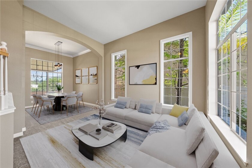 SPACIOUS SOUTH TEMECULA HOME WITH LOFT NEAR WINE COUNTRY & GREAT OAK HIGH! This beautiful Vail Ranch home offers unparalleled charm and elegance. 3 bedrooms, complete with a versatile loft, promises both style and convenience. Delight in being just a short stroll from the Redhawk Golf Course and mere moments from shopping, dining, and engaging entertainment options! As you step through the impressive double doors, you're greeted by a sun-drenched formal living and dining area, where oversized windows invite an abundance of natural light. The culinary enthusiast will revel in the dream kitchen, boasting white quartz countertops, an expansive island with barstool seating, a chic wine fridge, and sophisticated white cabinetry with soft-close drawers and cupboards, all complemented by a beautiful white subway tile backsplash. Adjacent to the kitchen, the inviting family room, complete with a gas fireplace, offers a cozy sanctuary for unwinding. The lower level also features a convenient full bathroom and a spacious laundry room with ample storage. make your way to the second-story and discover a versatile loft space, perfect for movie nights or a home office. Retreat to the primary bedroom, where tranquil mountain views, an inviting soaker tub, a new dual sink vanity, a separate shower, and a walk-in closet with an exceptional built-in closet system await. Two additional generously sized bedrooms and a well-appointed full bathroom provide comfort and convenience for all. Outside, bask in the sunshine on the private patio, equipped with an Alumawood cover, cooling fan, and retractable sunshade. An additional seating area presents the ideal spot for a fire pit, offering endless opportunities for outdoor enjoyment. With no rear neighbors and a graceful wrought iron back fence, savor breathtaking sunsets and stunning views of Temecula's natural beauty. Located just a short drive from the cultural delights of Old Town and the renowned Wine Country, this magnificent home offers a rare opportunity to embrace the quintessential Temecula lifestyle. Make this your new home today!