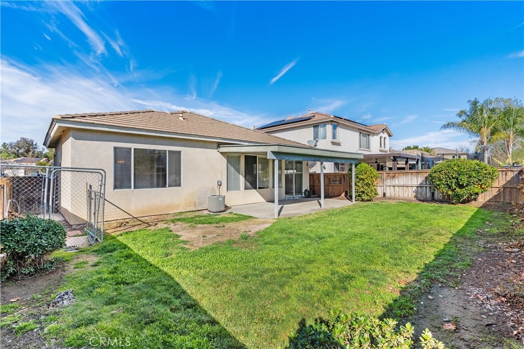 Fantastic home in Paseo Del Sol Community. This single-story home checks all the boxes for comfortable living in South Temecula. The home is bright and cheerful, with numerous windows and a cozy fireplace in the living area. The large primary bedroom is located towards the rear of the home, while the secondary bedrooms are at the front. The spacious great room is open to the kitchen. The two-car garage has an opener for easy entrance. The large rear yard features a covered patio, and the Orange and Meyer Lemon trees are in full bloom! There is a big grass area, and a dog run on the side of the home. With no rear neighbors, this peaceful neighborhood is close to shopping and schools and has easy freeway access for commuters. Take a look; this home is ready for a decorator's touch! The laundry room is inside the home, and there is a pantry in the kitchen. Paseo del Sol is a highly desirable community with numerous amenities, including a recreation center with a Jr. Olympic pool, wading pool, basketball and tennis courts, 4.5 miles of walking trails, acres of open space, and parks. It is conveniently near award-winning Temecula schools. It's time to make this home your own