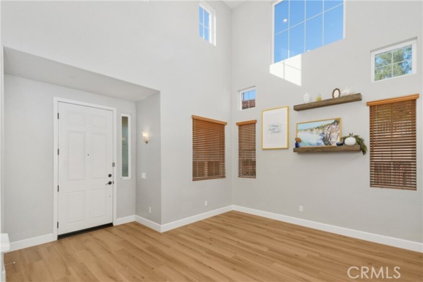 Holy Moly, here's the home you've been waiting for! A beautiful 4-bed, 3-bath home with paid-for solar and energy-efficient items you only dreamed of having! This home is located in Paseo del Sol on a HUGE LOT and a quiet cul-de-sac. Extra-large rear yard awaits you to build your dream pool, outdoor kitchen or garden retreat. The open concept floor plan features a cozy fireplace downstairs, a bedroom, and a bath on the main level. The luxury plank flooring is throughout the home and also on the stairwell. Large primary suite overlooks the rear yard—upstairs laundry room for your convenience, and 2 more bedrooms and baths upstairs. Sellers have upgraded the exterior paint to a 30-year warranted CoolWall paint as well as the new Heat Pump and A/C system. Solar also has power storage wall to REALLY save on the electricity! No more gas furnace in the attic, this beauty has a super efficient heat pump handling both heat and A/C. The overall layout of the home is thoughtfully planned, creating a harmonious flow between the different living areas. This property presents an opportunity for individuals or families seeking a comfortable and practical living environment. Paseo Del Sol has award winning schools, close to shopping and I-15 access, lots of trails and park areas for family enjoyment, and two fabulous Pools and recreation areas to enjoy. Vinyl fencing has also been completed! Hurry out to see this beautiful, light, bright, and open home; you won't be disappointed!!!