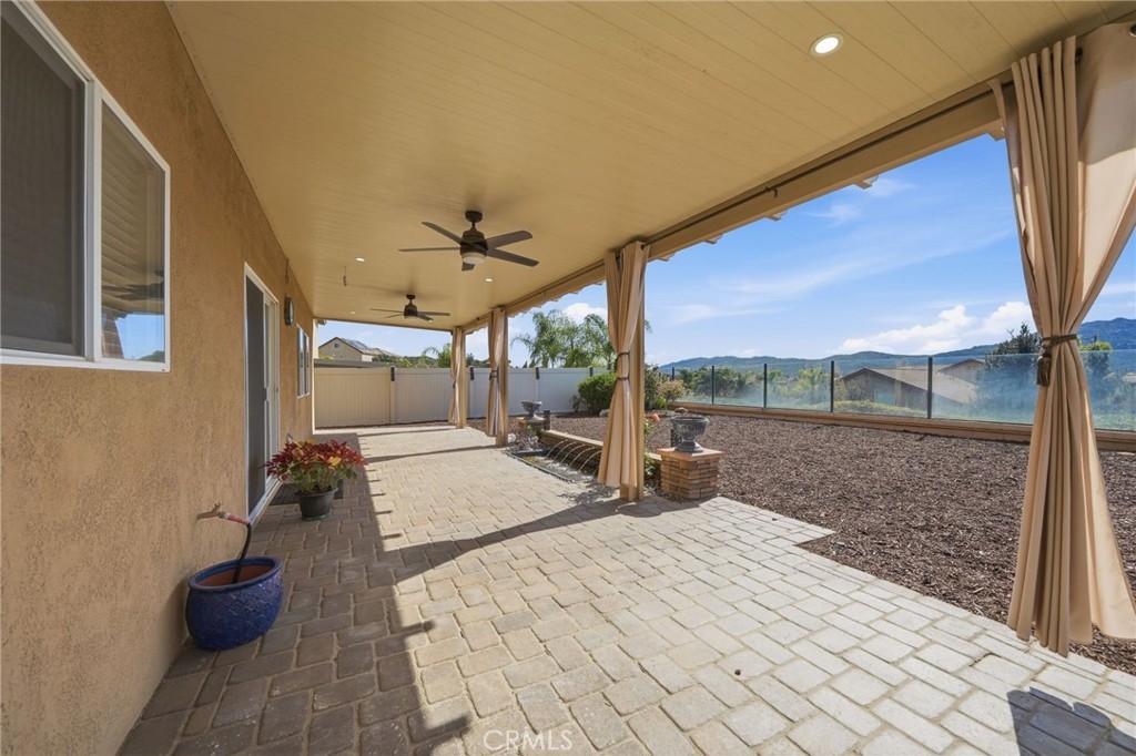 REDHAWK HOME WITH BEAUTIFUL VIEWS. BRAND NEW KITCHEN, LARGE WALK IN PANTRY ON A LARGE LOT WITH A DOWNSTAIRS BEDROOM AND BATHROOM. Located in the highly desirable Redhawk community of South Temecula, minutes from Great Oak High School. This 4 bedroom, 3 bath home offers 2,916 square feet of thoughtfully designed living space that blends elevated style with everyday comfort. You’re immediately greeted by a sense of air and openness, featuring soaring ceilings, natural light, and an expansive layout that creates both volume and warmth with seamless flow between the living, dining, and kitchen spaces. The remodeled kitchen serves as the heart of the home, showcasing crisp white shaker cabinetry, quartz countertops, subway tile backsplash, a built-in range and stovetop, and a large walk-in pantry. A downstairs bedroom and full bath provide ideal accommodations for guests or multi-generational living, while upstairs a spacious loft offers endless possibilities as a media room, game room, or secondary living space. The expansive primary suite is a true sanctuary that is generously sized to create a peaceful retreat, complete with an ensuite bath designed for both relaxation and functionality. Additional bedrooms provide both comfort and room to unwind. The backyard retreat is complete with a relaxing water feature, a low-maintenance yard, and a 40-foot-wide Alumawood patio cover with recessed lighting, that extends your living space outdoors making it the ideal setting for dining, entertaining, or enjoying tranquil sunset evenings. A drought-resistant front yard adds polished curb appeal with low-maintenance efficiency, while additional highlights like a Ring alarm system make this home a prime location minutes from top-rated schools, shopping, dining, and Temecula Wine Country. Refined, spacious, and set against stunning natural views, this Redhawk home delivers the lifestyle you're searching for.