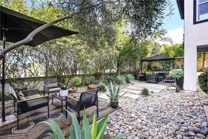 Welcome to 32986 Anasazi Drive, a refined contemporary home offering 4 bedrooms, a casita, spacious loft, flex space, and approx 3,428 square feet of thoughtfully designed living space. Privately situated on a cul-de-sac in the highly regarded Redhawk golf community, this impeccably updated, interior designer–curated home offers elevated finishes, a highly versatile floor plan, and serene views with no rear neighbors. A gated portico courtyard and custom wrought iron entry open to a grand foyer highlighted by a dramatic flared staircase and expansive living and dining spaces framed by wall-to-wall windows. The kitchen is designed for both form and function, featuring white cabinetry with crown molding, granite countertops, marble backsplash, an extended island, a walk-in pantry, newer appliances, a pot filler, a deep sink, and a custom-built-in bar with a refrigerator. The flexible layout includes a private-entry casita and a downstairs bedroom. Upstairs, the luxurious primary retreat offers a sitting area, separate vanity space, spa-inspired bath with a frameless marble shower, dual vanities, soaking tub, and an oversized walk-in closet with custom organizers. A generous loft presents the opportunity for a fifth bedroom, complemented by an additional flex space ideal for a study or reading area. The outdoor living space is framed by lush mature landscaping, creating a tranquil garden setting complemented by clean-lined concrete stepping stones, decorative river-rock hardscaping, a built-in Lion BBQ, and new vinyl fencing. Designed for entertaining and relaxation, the space blends natural beauty with modern, low-maintenance sophistication in a serene, private setting. Additional highlights include zoned HVAC, whole-house fan, water softener, automated kitchen blinds, designer lighting, and LVP water-resistant flooring upstairs. Just minutes from top-rated schools, Redhawk Golf Course, Old Town Temecula, Pechanga Resort, and renowned wineries, this exceptional home delivers privacy, elegance, and a lifestyle designed to be enjoyed.