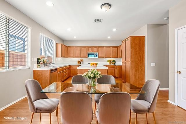 Welcome to 33010 Poppy St., located in the highly sought-after gated golf course community of Redhawk in Temecula! This spacious home boasts the best floor plan in the neighborhood, featuring 3 bedrooms upstairs and a full bathroom downstairs—perfect for guests or multigenerational living. Enjoy a large kitchen with a center island, stainless steel appliances, and abundant counter space that opens to the family room with a cozy fireplace. The home also features separate living, dining, and family rooms, offering versatile spaces for relaxation and entertaining. Upstairs, the oversized primary suite includes a huge walk-in closet and a luxurious en-suite bath with a separate shower and soaking tub. Additional features include mirror closet doors, upstairs laundry, central AC, new fencing, and a three-car garage. Enjoy life in a gated, golf course community with great schools, parks, and all the best Temecula has to offer. This one checks all the boxes—don’t miss it!