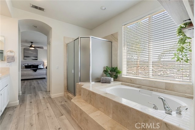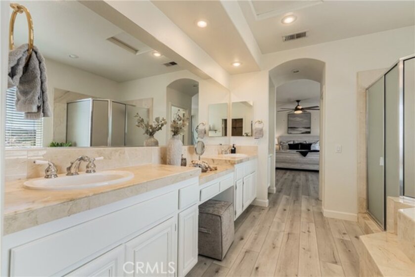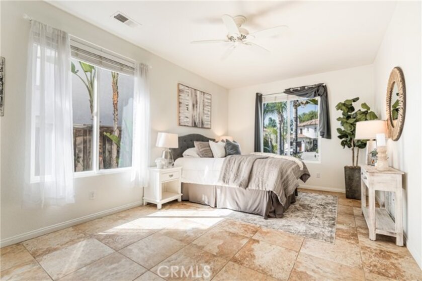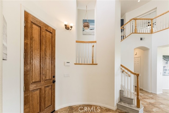 VIEWS + CASITA + Fully OWNED SOLAR & NEW HVAC System! Positioned at the end of a quiet cul-de-sac on one of Redhawk's most prized streets, this 4-bedroom, 3-bathroom home offers 3,353 sq. ft. and impressive panoramic views. This popular floor plan includes a main-floor casita with a private entrance and a full ensuite bathroom which makes it perfect for guests, family, home business or a neat art studio...so many possibilities. Inside, the home features an open layout with upgraded flooring, recessed lighting, two fireplaces and tons of natural light pouring in from all over. The kitchen is appointed with granite countertops, stainless steel appliances, and freshly repainted cabinets. A large upstairs loft provides a flexible space for a second living area, home office or play area. The owner’s suite is a true retreat, boasting a double-door entry, generous space, a spa-like bathroom, large walk-in closet and all with stunning views of the valley and mountains. The backyard is designed for entertaining and privacy, featuring a flagstone patio, a tranquil fountain, and mature queen palms, no rear neighbor and all set against unobstructed views. This home is equipped with a FULLY OWNED 33 panel solar system, EV charger, new HVAC system, dual thermostat and whole house water filtration system. Located within the acclaimed Great Oak School District and benefiting from low taxes and a low HOA, this home is just minutes from Redhawk Golf Course, Old Town Temecula, and local wineries. This is a rare opportunity to own one of the best locations in the neighborhood.
