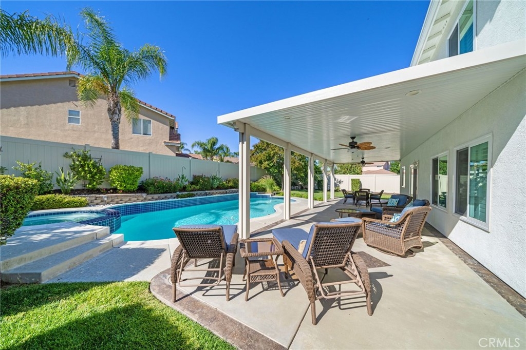 2.75% VA ASSUMABLE LOAN!! OWNED SOLAR!! SOUTH TEMECULA POOL HOME ON A CUL-DE-SAC! Don't let this home pass you by... Located in the beautiful California Tradewinds community bordering Temecula Wine Country and Crowne Hill, this is a one-of-a-kind pool home that you won't want to miss! This home features 4-bedrooms with a spacious loft plus a gorgeous covered patio overlooking the sparkling pool and bubbling jacuzzi! As you step inside the formal sitting and dining areas welcome you and heading to the back of the home you will find the kitchen which overlooks the dining area and large family room. The large slider door is located off the dining area making this a perfect integration of indoor/outdoor living. All of the bedrooms plus the spacious loft are located on the upper level with the primary bedroom featuring vaulted ceilings plus a large en-suite bathroom with dual sinks, a separate tub & shower, a walk-in closet with 2 doors, and great backyard views. The backyard is fully landscaped with lush grass and mature trees. All of this plus owned solar, a whole house fan, and a corner lot location offering privacy. Located within the boundaries of distinguished Temecula Valley High School, Temecula Middle School, and a short walk to Crowne Hill Elementary! Plus close proximity to shopping, dining, award-winning Temecula Wine Country, and Old Town Temecula, this is a home you don't want to miss! Schedule your private tour today!