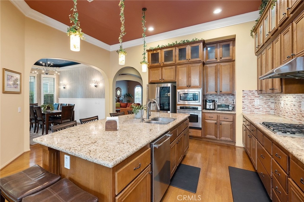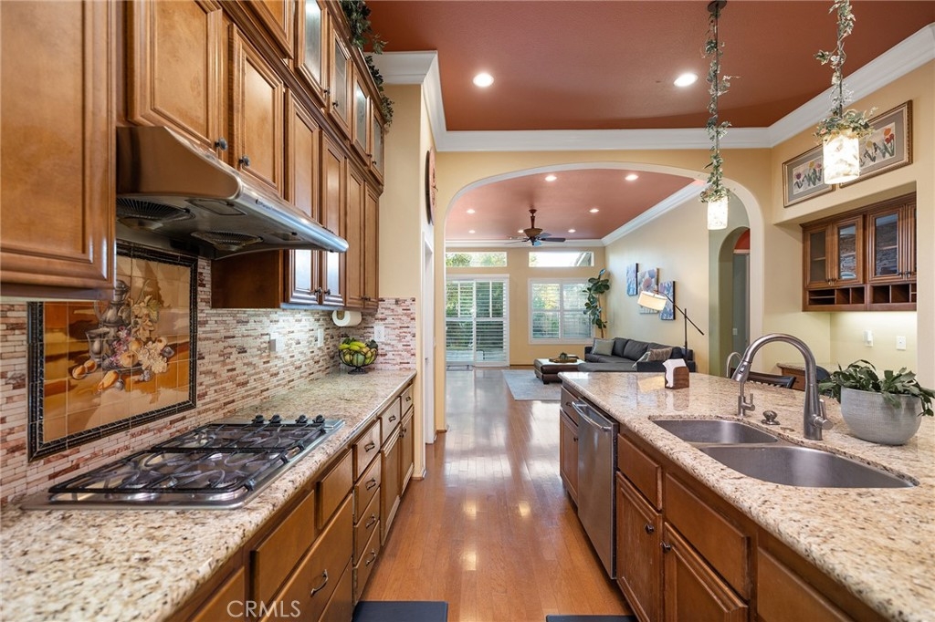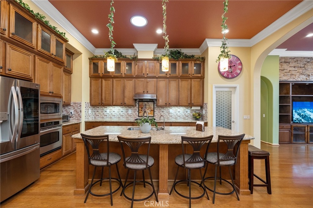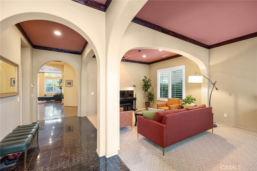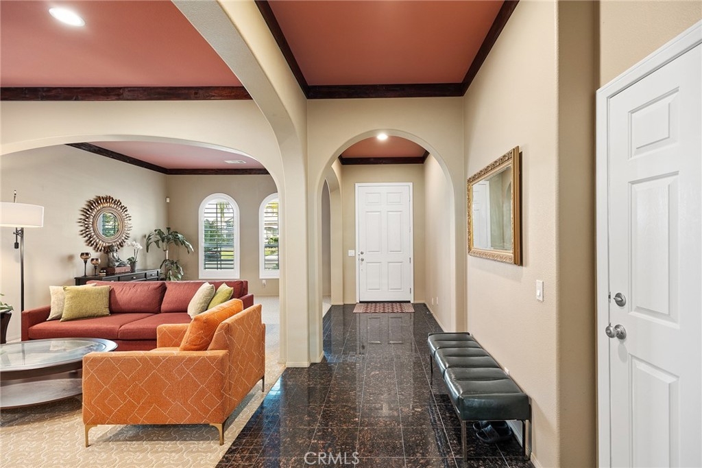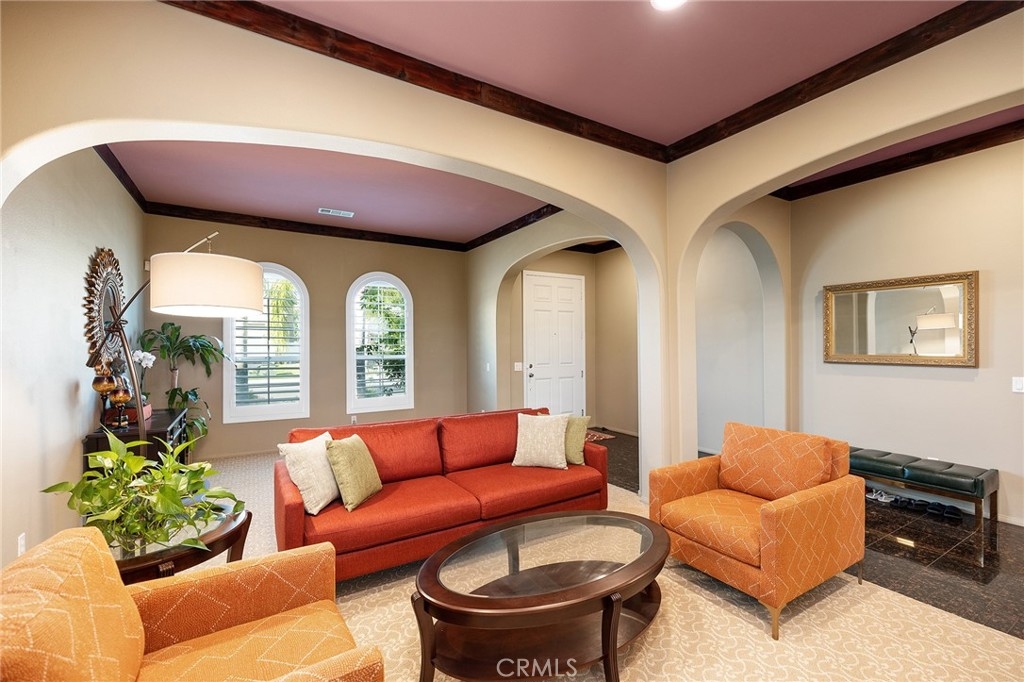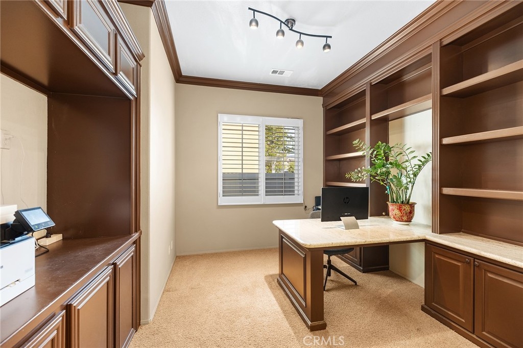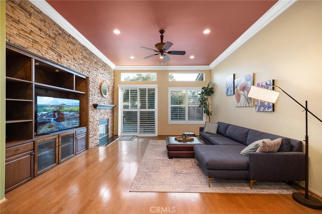 Warm and Welcoming, this Well-Maintained SINGLE LEVEL HOME in South Temecula with an extra Tall 3-car wide garage offers Single Story Living at its Best! If you love Entertaining, Tall Ceilings, HUGE Kitchens, and separation between Main Bedroom Suite and Guest Quarters, this Home is for YOU! Everything about this Residence feels spacious and extra large. Crown Molding, Stacked Stone Accent Wall, Gorgeous Dining Room (optional 5th bedroom or another Office), Plantation Shutters throughout, Enormous Living Room that could hold a Pool Table or Grand Piano, or be the ideal space for your personal yoga studio or home day care. Impressive Office with high end Built-ins (easily turned into Bedroom #4, with a designated closet Nook already in place) Wood Floors, Tile in wet areas, and Carpet in sleeping areas, Easy/low-maintenance backyard with Fruit Trees (Jujube apples, Honeycrisp Apples, Asian Pears, Meyer Lemons, Pomegranate), extra Privacy with no direct neighbor behind and no one looking in! Newer 5-ton HVAC system (installed in 2023), Cat 5 ethernet cables in every room, Home Security Alarm connected to Police, You will love living here - Blue Ribbon Schools, Dining and Shopping nearby, Gateway to Wine Country, and Easy Access for Commuters!