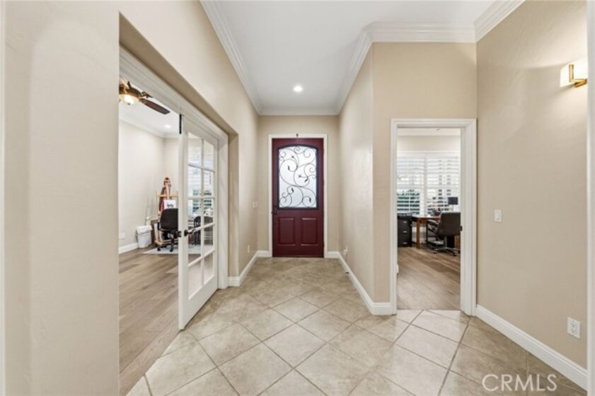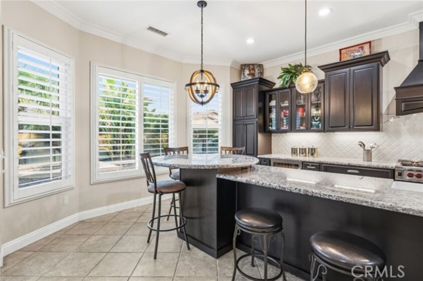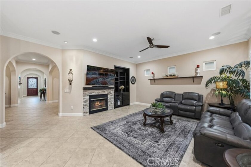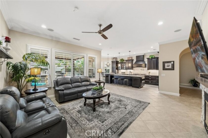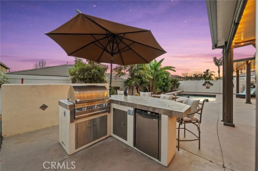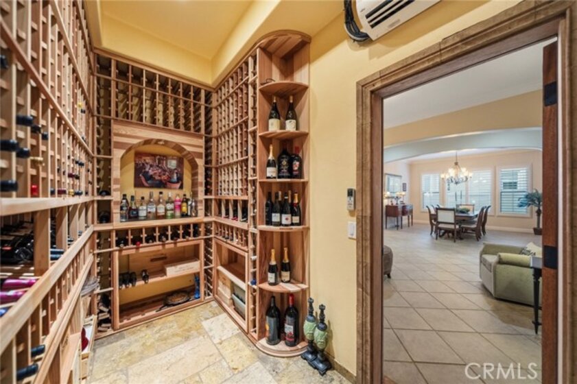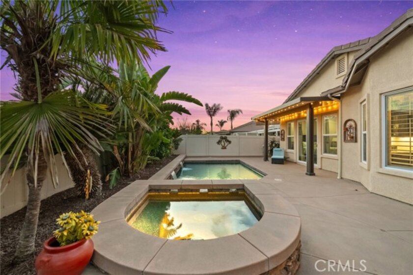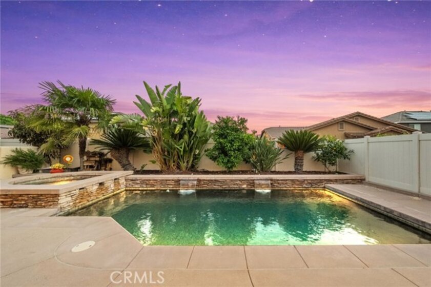 A beautiful and rare opportunity to purchase a meticulously cared-for single-story pool home, proudly maintained by its current owners. Offering approximately 3,000 square feet, this thoughtfully designed home features 4 bedrooms and 3 full bathrooms with a highly functional floorplan. As you enter the home, three bedrooms are positioned toward the front of the property, one of which is currently set up as a private office, perfect for working from home. The home offers multiple living and entertaining spaces including a welcoming living room, formal dining room, and a spacious family room that flows seamlessly into the gourmet kitchen. The kitchen is a chef’s dream, complete with top-of-the-line appliances, rich cabinetry, custom lighting, and a large island with a built-in table and bar-height seating—perfect for gathering and entertaining. For wine enthusiasts, the home features a custom wine cellar with its own dedicated mini-split AC system to maintain ideal temperatures year-round, offering storage for approximately 575 bottles with display shelving. Privately situated on the opposite side of the home, the expansive primary suite offers direct backyard access and a beautifully appointed bathroom with granite counters, a large walk-in shower with dual shower heads, and a spacious walk-in closet with custom built-ins and center island. Additional upgrades include crown moulding, plantation shutters, upgraded lighting and fixtures, soft-close cabinetry, LED lighting, and engineered wood and tile flooring throughout with no carpet. The inviting family room showcases a stacked stone fireplace, built-in entertainment center, and surround sound speakers. The garage features epoxy flooring and built-in cabinets, while the oversized laundry room includes additional cabinetry and a utility sink. The home also includes owned solar panels and a water softener system. Step outside to an entertainer’s backyard featuring a sleek Pebble Tec saltwater pool and spa with waterfalls and stacked stone accents, a solar cover, newer pump, and Jandy remote controls. The outdoor space also includes a built-in barbecue island with stainless steel grill and mini fridge. Located on a quiet cul-de-sac in desirable South Temecula within the Great Oak School District and just minutes from shopping, dining, and Temecula’s award-winning wineries. With low HOA and pride of ownership throughout, this rare single-story pool home is truly a standout. Welcome Home!