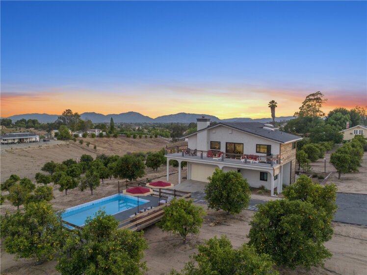LOCATION!! LOCATION!! LOCATION!! Located in the heart of Temecula’s renowned Wine Country, this beautifully renovated two-story residence sits on 2.5 acres of usable land and offers exceptional privacy, versatility, and scenic surroundings. Just minutes from acclaimed wineries, the property presents an outstanding opportunity for residential living, investment, or future expansion, including potential for Accessory Dwelling Units (ADUs). The home features three generously sized bedrooms, three bathrooms, and approximately 2,182 square feet of thoughtfully updated living space. Recent renovations include a new roof, fresh exterior paint, new interior windows and sliding glass doors, updated laminate flooring throughout, a solar energy system, and a newer septic system. Central air conditioning, along with a newly installed upstairs split system, provides year-round comfort. The expansive grounds offer designated RV parking, approximately 200 producing Valencia orange trees, and panoramic views of the surrounding vineyards and rolling hills. Outdoor amenities include an above-ground pool, a Jacuzzi, and a spacious wraparound upper deck, ideal for relaxation and entertaining while enjoying the serene Wine Country setting. Zoned for flexibility, the property is approved for horse use, qualifies for an agricultural water rate discount, and offers ample space for the development of one or more ADUs—ideal for extended family accommodations, guest housing, or rental income. Ideally situated near Wine Country’s premier tasting rooms, dining, and events, this exceptional property is well-suited as a primary residence, weekend retreat, or income-producing investment. Offering a rare combination of location, land, and upgrades, this home represents a unique opportunity in one of Temecula Wine Country’s most desirable areas.