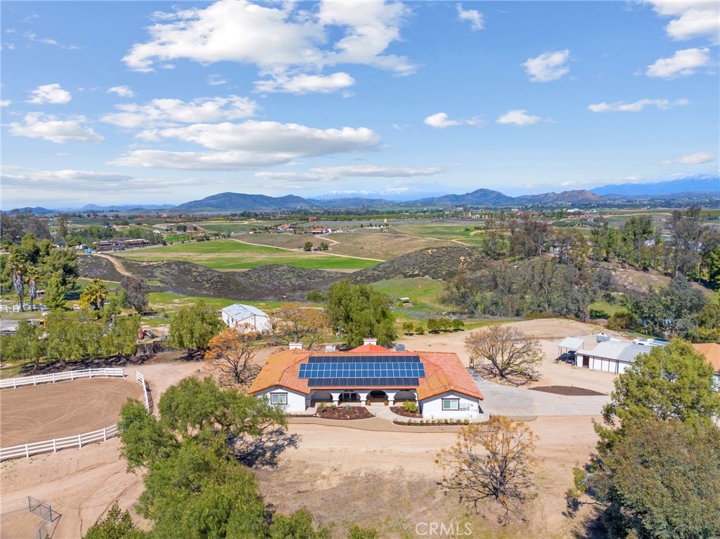 Blanca Rosa — Prime Temecula wine country location just off Calle Contento & Madera de Playa. This 5-acre property boasts turnkey equestrian facilities in the heart of Southern California’s vineyard region, only 15 minutes to the freeway. Horse enthusiasts will appreciate the 8-stall barn with wash racks, feed room, and tack room, plus a 75' × 150' arena, and fenced pastures. Ride direct from the property to nearby wine country riding trails for a fantastic lunch at one of the many award-winning wineries. The beautifully updated 3 bed, 3 bath home blends country warmth with modern updates, featuring bright living spaces, a well-appointed kitchen, comfortable bedrooms, and solar. Recent improvements include new attic insulation and a roof less than 2 years old. From the property, enjoy sweeping views of vineyards, nearby wineries, and snow-capped mountains. Just minutes from Galway Downs & CRC, this rare find combines location, functionality, and privacy for a true wine country equestrian lifestyle.