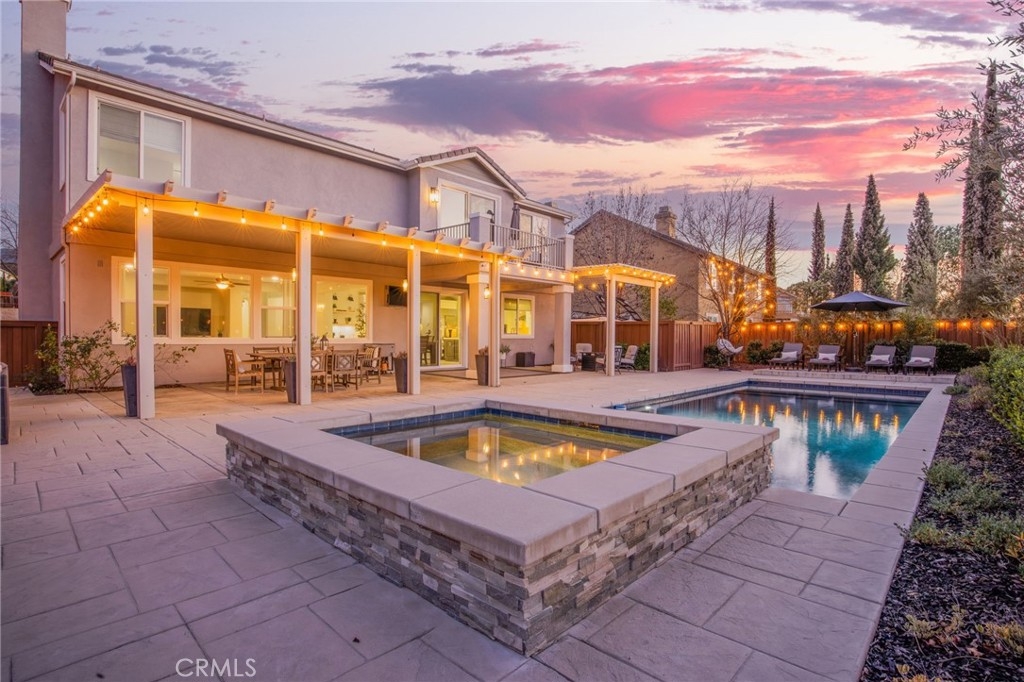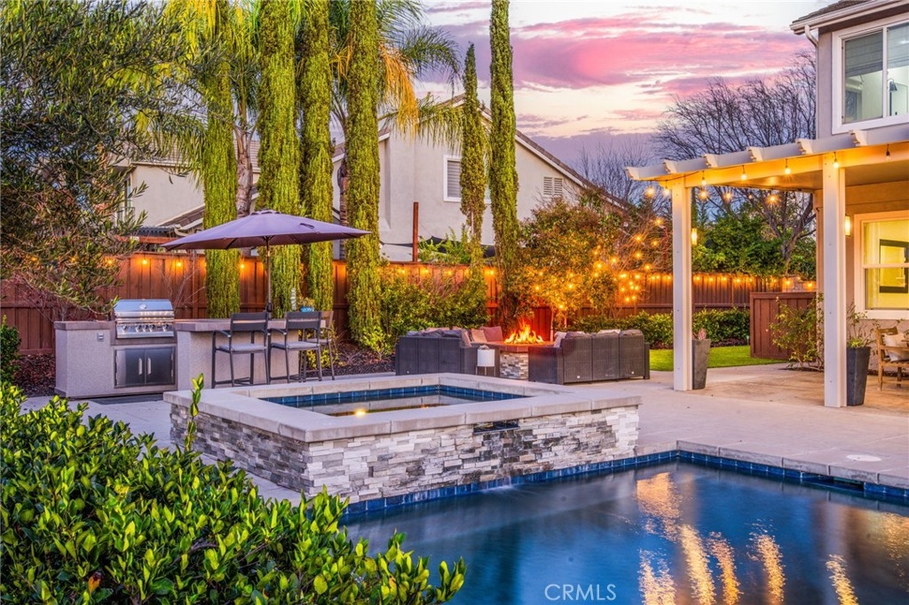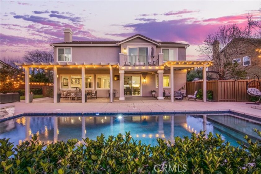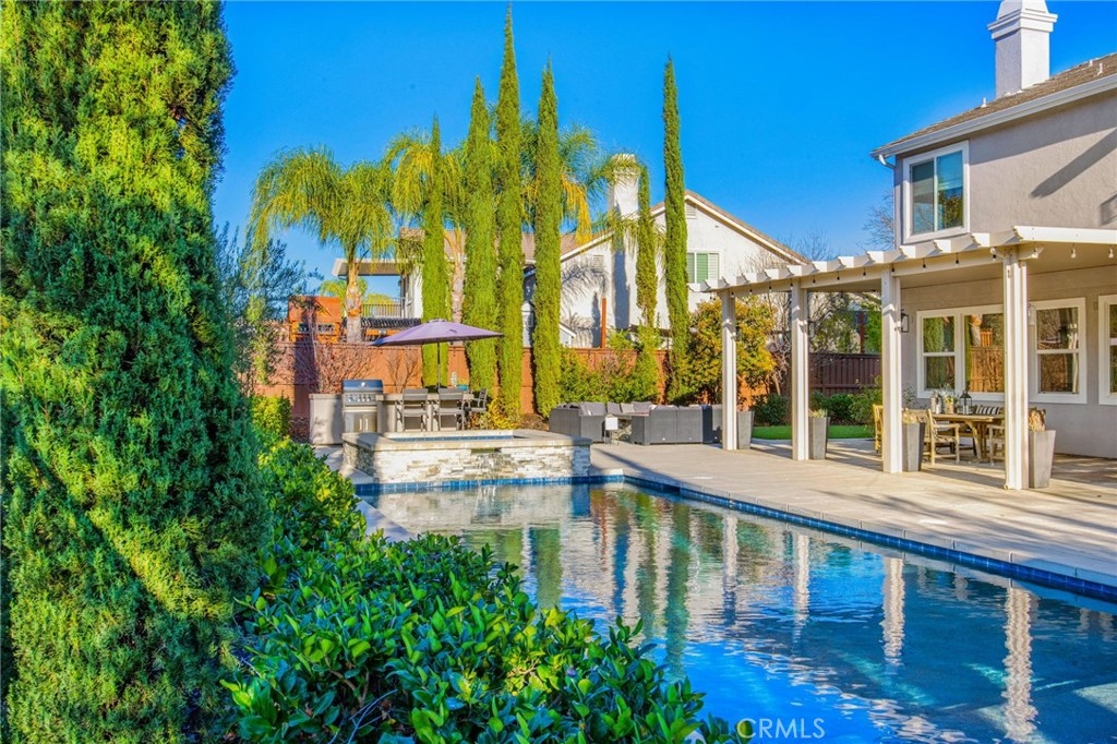 Welcome to Morgan Valley’s most desirable home- where quality, space, and lifestyle come together in a way that truly feels like HOME. Set on an oversized 0.29-acre lot with NO REAR NEIGHBORS, this beautifully upgraded estate offers 4,209 sq ft of modern living space and a private backyard oasis that reflects the Temecula lifestyle.The curb appeal immediately defines true pride in ownership. Inside, a grand formal entry, soaring ceilings, and wood-inspired flooring set the tone as your eye is immediately drawn through the home to views of the backyard oasis beyond, creating an immediate sense of openness and connection.The main level offers excellent flexibility with an oversized room currently used as an office, a full downstairs bathroom with walk-in shower-ideal for guests or extended family. A formal sitting room with an adjacent dining area strikes the right balance between hosting and everyday comfort. At the heart of the home is a stunning kitchen dressed in the most modern upgrades and opens directly to the oversized family room. This stunning kitchen includes custom white cabinetry,farmhouse sink overlooking the backyard, stainless steel appliances, oversized island, walk-in pantry, custom backsplash and lighting. Also enjoy built-in coffee bar, and a butler’s area complete with a wine fridge. The family room is filled with natural light and anchored by a cozy fireplace and large picture windows. Upstairs, a beautifully designed staircase leads to an oversized loft and 4 spacious bedrooms, including a junior suite with private bathroom and an additional guest bath.The primary suite is thoughtfully set apart as its own retreat offering generous space, relaxing sitting area, and west-facing private balcony- perfect for enjoying evening sunsets.The spa-inspired primary bathroom features large walk-in shower, separate soaking tub, dual vanities, and two oversized walk-in closets.The private backyard extends the living space with no rear neighbors-ideal for both everyday living and entertaining. A covered patio opens to a sparkling saltwater POOL AND SPA, outdoor kitchen, fire pit, and multiple seating areas. Additional highlights include an oversized turf side yard, RV/BOAT parking, PAID SOLAR, laundry with sink and storage, and a finished 3-car garage. Morgan Valley living- known for its exceptional schools, strong community and proximity to Temecula wineries, local conveniences, and more. This home is designed for the moments that matter most.