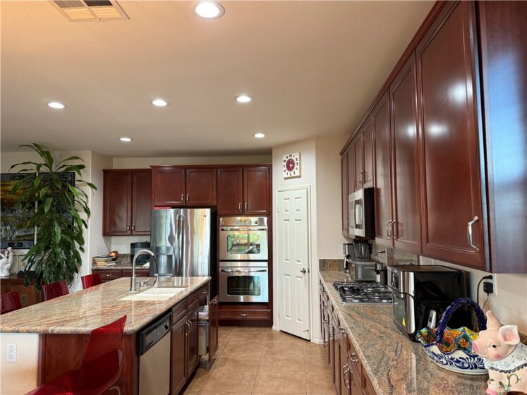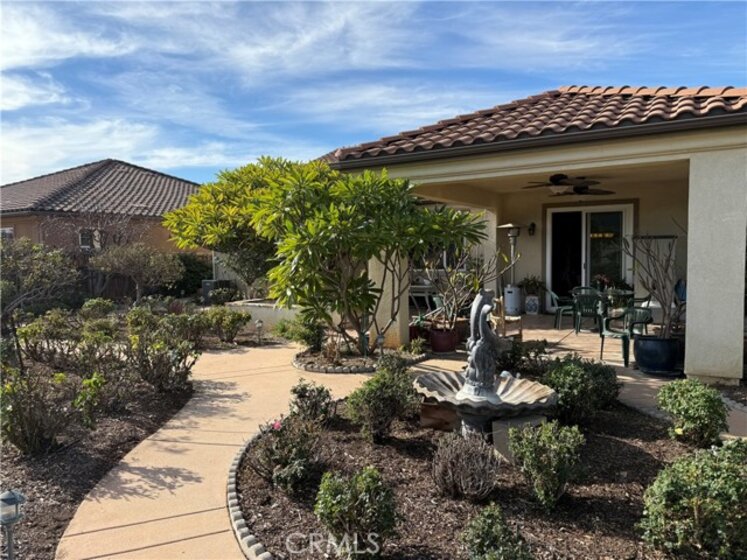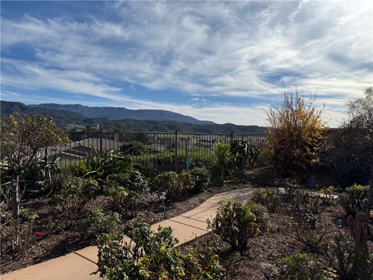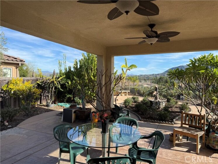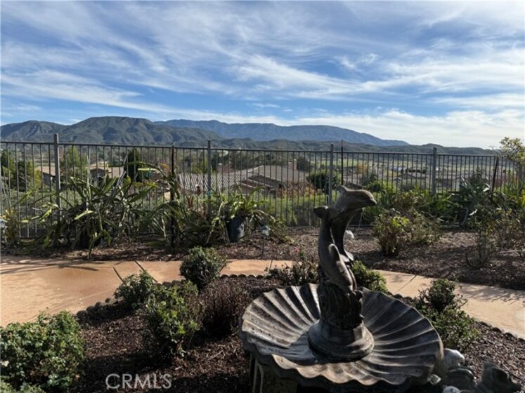 This gorgeous home with spectacular views of the northern slope of the Palomar Mountains is located in the highly desirable community of Morgan Hill in the southern part of Temecula. It is a single-story home, very well maintained, and sitting on one of the largest land lots in the region. The layout contains four bedrooms, including one bedroom that has been utilized as a home office, and 2.5 bathrooms. Extra cabinets were ordered during initial construction, and the cabinets were upgraded then to a lovely cherry finish. The floor plan is an open design, with the kitchen opening up to the family room and entertainment area. The floors were also upgraded during construction to large tiles throughout most of the home, except for oak wood floors in the largest bedroom and carpeting in the three other bedrooms. The kitchen contains a large island, pantry, slow-close drawers, along with plentiful cabinet space. The kitchen opens through a sliding glass door to the covered patio area. The laundry room has been upgraded with numerous cabinets to provide additional storage space, also with a cherry finish. The spacious patio was added during the first year after the home was built, with two ceiling fans and a finished roof that matches the roof of the home, giving it a look as though it was part of the original construction. A large stucco shed was also added during the first year of occupancy, with tile roofing that matches the home roof and makes it look as though it was part of the original design. The landscaping is beautiful, with over 100 rose bushes bringing various colors and charm to the front and back yards. In addition, about a dozen fruit trees in the back yard provide fresh fruit at home throughout much of the year. The back yard also features a gas-lighted fire pit and adjoining seating bench to help keep folks warm during cooler winter evenings. The living room and primary bedroom feature stunning views of the Palomar Mountains, with colorful sunrises. The garage is over-sized to fit two cars and tandem storage space at the back and plenty of room for cabinets and wall units along the sides. The Morgan Hill HOA clubhouse is located on the next street to the south, and it hosts a pool, spa, fitness center, billiards room, playgrounds, and sports courts. The prestigious, public Great Oak High School is a few minutes away by car. Interstate 15 and Old Town Temecula are about five miles by car. Temecula Wine County is nearby in the other direction.