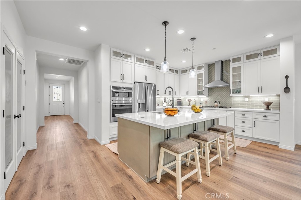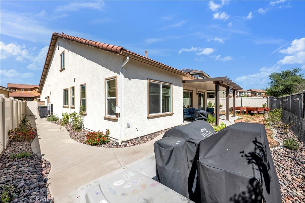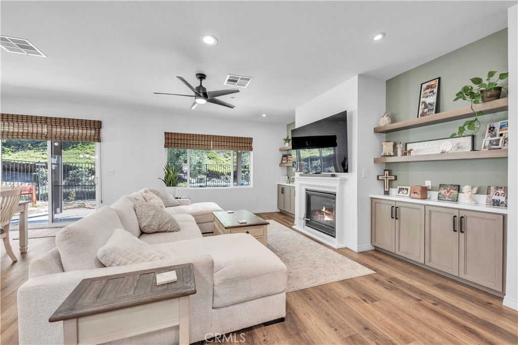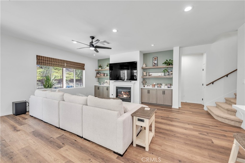 Impeccably upgraded turnkey residence showcasing premium finishes and designer touches. This home is truly 100% move-in ready with almost everything brand new as of 2024. Spacious 4-bedroom, 3 bath two-story home featuring a large great room with a cozy fireplace, built in cabinetry and shelving. The Great room/living area opens seamlessly to the newly upgraded kitchen-complete with breakfast bar island, modern white cabinetry, quartz countertops, upgraded appliances, a sleek range hood and designer backsplash. The main level includes three bedrooms and two full baths, offering a rare and flexible layout ideal for modern living. The upper level features a loft perfect for play area or home office, a large bedroom (nearly same size as the primary bedroom) and bathroom. All countertops are a beautiful white quartz in both the kitchen and bathrooms. Ceiling fans in all bedrooms and the great room. Extra recessed lighting throughout on a dimmer switch. Fresh paint on the interior and exterior. Upgraded vinyl wood flooring ,new carpeting upstairs and stylish tile in all the bathrooms all new in 2024. New Dual AC unit for upstairs and downstairs with a whole house fan and tankless water heater add to extra energy efficiency all installed in 2024. A standout feature is the 22 panels, 2 tesla batteries fully paid off and installed in 2024 with approx cost of 47k. Finished garage with epoxy flooring and storage shelving. Interior laundry room. Home is equipped with built in fire sprinklers for added safety. Rear yard has covered patio with a relaxing view of the greenbelt and birdwatching. Small grass area on side yard with small storage shed and raised gardening beds. This home is located in the highly desirable Morgan Hill community which provides standout amenities to include a top notch clubhouse, resort-style pool & spa, pickleball, tennis Courts, fitness center, gameroom/ballroom , outdoor fireplace lounge, several community events, parks, dog park and walking & hiking paths. Located in Temecula Valley Unified School District, known for strong academic performance. Ideally located near the beautiful Wine Country,shopping, dining, Famous Old Town Temecula, Pechanga Casino plus hot air balloon sightings year round. Make this home a must see!