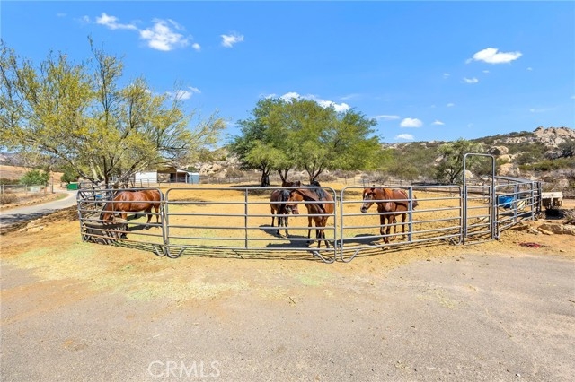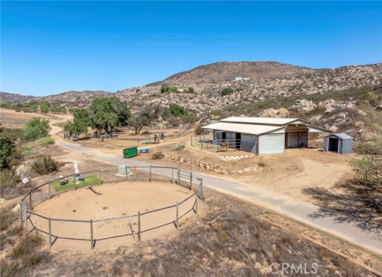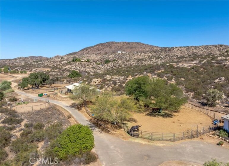 Discover serenity in Temecula Wine Country with this expansive residential property in the Equestrian Community of Oakridge Ranches. Perfectly nestled among rolling hills, this home offers stunning panoramic views and privacy unparalleled in the region. This spacious residence features a welcoming layout that includes 3 bedrooms, 2.5 bathrooms, plus a large den that boasts ample natural light and scenic views. It also offers large living spaces with elegant hardwood flooring and a living area fireplace that creates a cozy atmosphere. The kitchen is a delight with its modern appliances, substantial storage options, and an island that caters to both meal preparation and casual dining. The property spans 22 acres, offering a tranquil retreat with mature natural landscapes and ample outdoor spaces, including a large patio area ideal for gatherings. Equestrian enthusiasts will appreciate the well-equipped horse facilities, including a 4-stall barn, corrals, and turnout pens. The home also comes with Paid Off solar. This home represents a unique blend of rustic charm and modern comforts, ideal for those seeking a peaceful lifestyle close to nature yet within reach of city amenities. Come and experience this beautiful escape, where every day feels like a vacation.