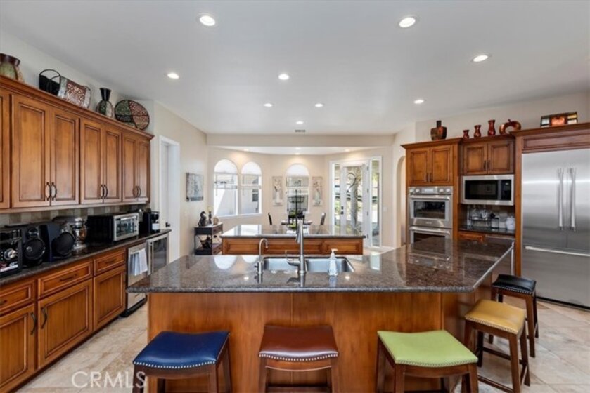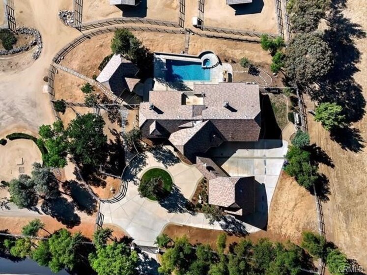 Beautiful custom estate nestled on 4.36 acres in the heart of Temecula Wine Country. Wrought iron gate entry leads to a circular drive with porte-cochere bridging main house with separate guest quarters, full bath and garage areas. This estate boasts 3,330 sq. ft of luxurious living. Main living is on the main floor with the master suite with retreat and fireplace. Jack & Jill bedrooms located at other end of home. An upstairs office or could be a bedroom with balcony. This beautiful home boasts 4 bedroom/3 bath, living room and family room with wood burning fireplace. The kitchen is well appointed with double ovens, lots of beautiful cabinetry, large island, stainless steel appliance, sub zero refrigerator and a walk in pantry. Fantastic outdoor covered living areas w/BBQ island overlooks pool with diving board and spa. Wifi remotely activated spa & pool controls. A separate guest house 750+- sq. ft. sleeps 4 with one bedroom and one bath, walk in closet, living room area with kitchenette. Wonderful covered patios in the front patio with a darling casita that sleeps 2 with 1 bedroom & 1 bath and walk in closet and garage. The horse facilites are fantastic with 6 stall barn with large breezeway, hay room, tack room and wash racks & grooming stalls. Huge working arena with lights approx. 100x200 ft. Large paddocks with covers. Lots of usable land with plenty of turnaround for trailers & RV's. RV pad with electricity, water and dumping station. All fenced and cross fenced with security gates. Centrally located with 1.5 hours to LA, San Diego, Orange County & Palm Springs. Temecula living at it's best!!