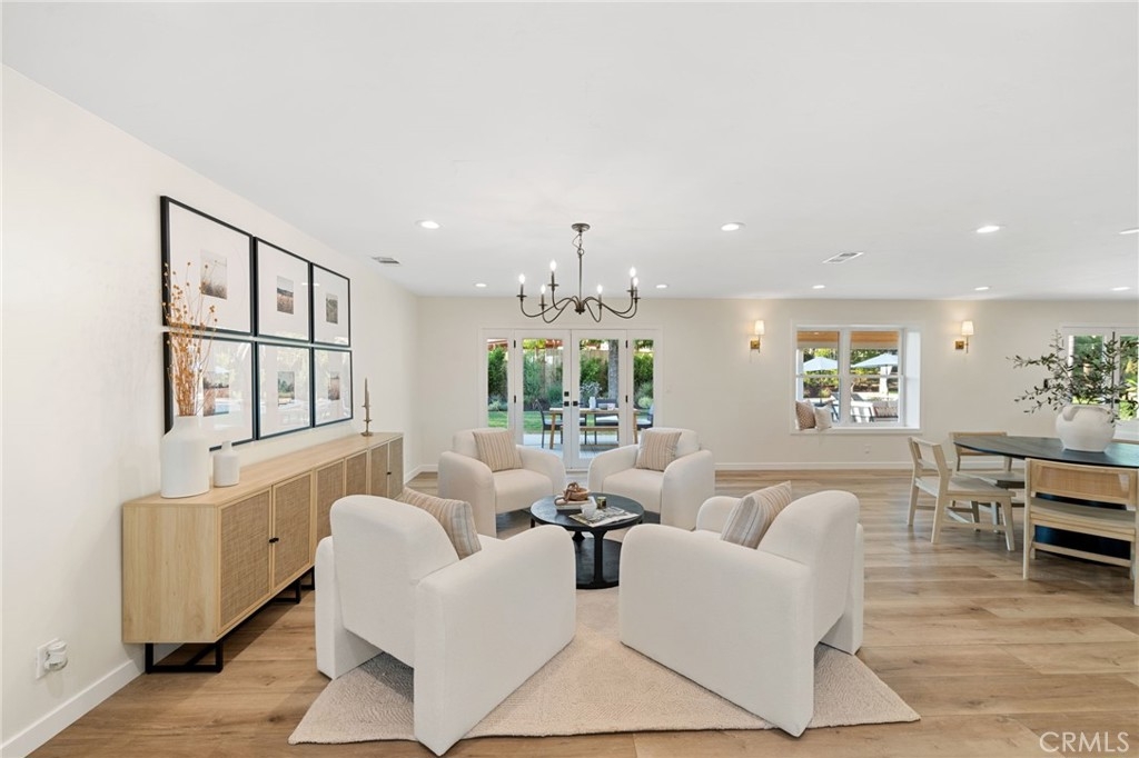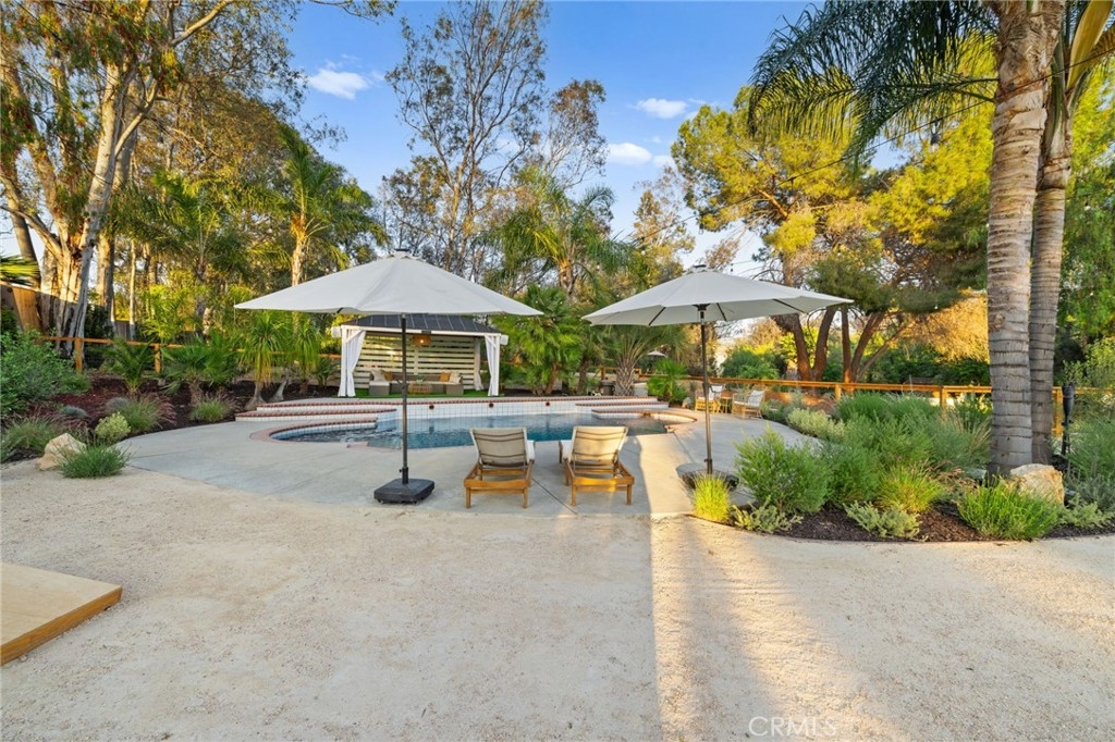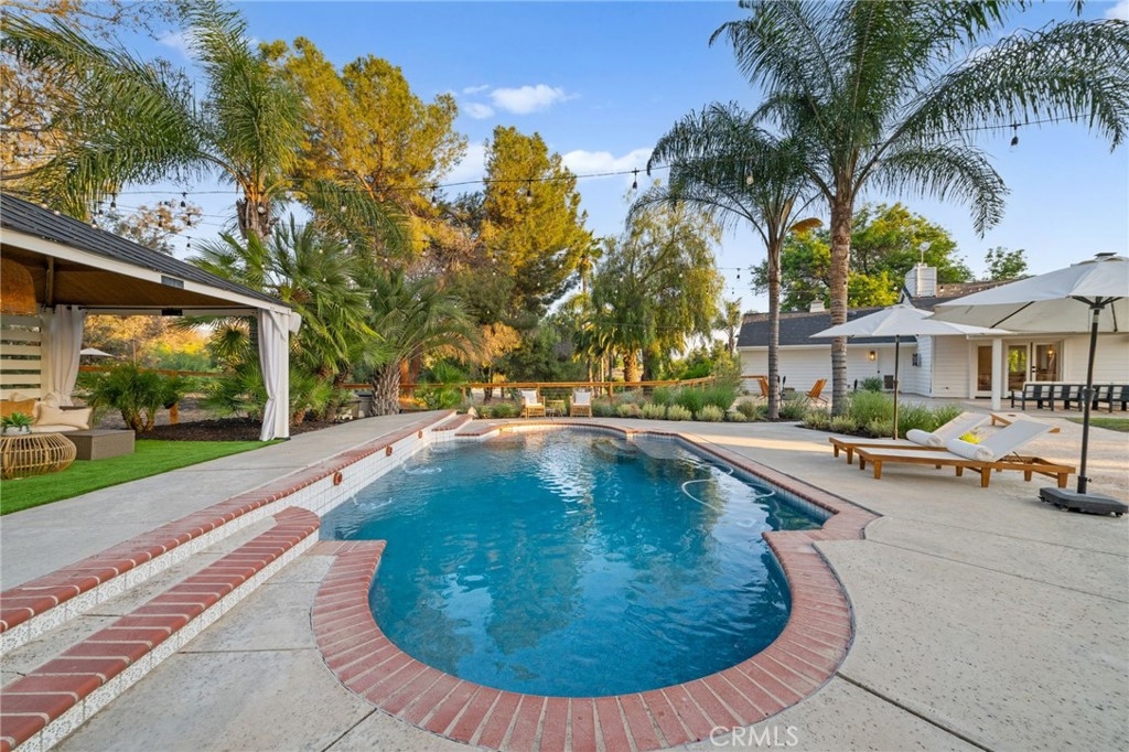 Discover LUXURY living in this fully remodeled 4-bedroom, 2.5-bath single-story home on 2.5 acres in Temecula Wine Country. As you walk toward the front door you are greeted by a large front grass area, fruit trees and peek-a-boo views of the rolling WINE country hills. Upon entry through the double farm house front doors, you are quickly welcomed with an open entry which leads straight to the wide open entertainer's paradise. Plenty of room for a dining, living, and game room space, open to the chef's kitchen, complete with a wine bar, stainless steel appliances, and walk-in PANTRY. To the left of the home are 3 oversized GUEST bedrooms, large double sink vanity, along with a tub/shower combo, enhanced with a beautiful GLASS shower enclosure. The primary suite boasts double sinks, an oversized walk-in shower with dual shower heads and rain shower, offering a spa-like retreat. The primary suite also has a glass sliding DOOR which leads to a private patio, perfect for that morning cup of coffee. Step outside to a covered patio, grass BACKYARD with a sparkling pool, and a large fire pit area. A true entertainer's dream! The property is FULLY gated, and amenities include a horse arena at the entry of the property, a sprawling driveway up to the home, plenty of room for extra PARKING, and space for an ADU, RV parking, or a detached garage. Located just a GOLF cart or bike ride away from renowned wineries, this property blends modern elegance with the charm of wine country living. Contact us today to schedule a private tour and make this SLICE of wine country paradise yours!