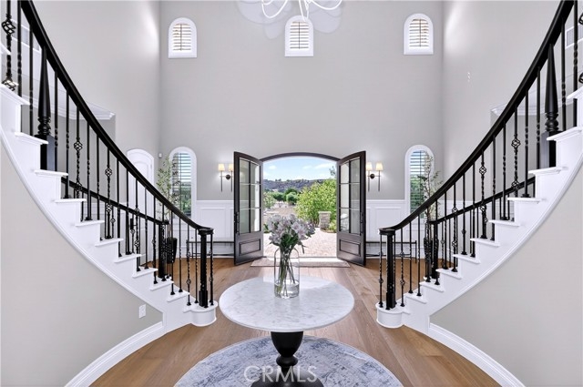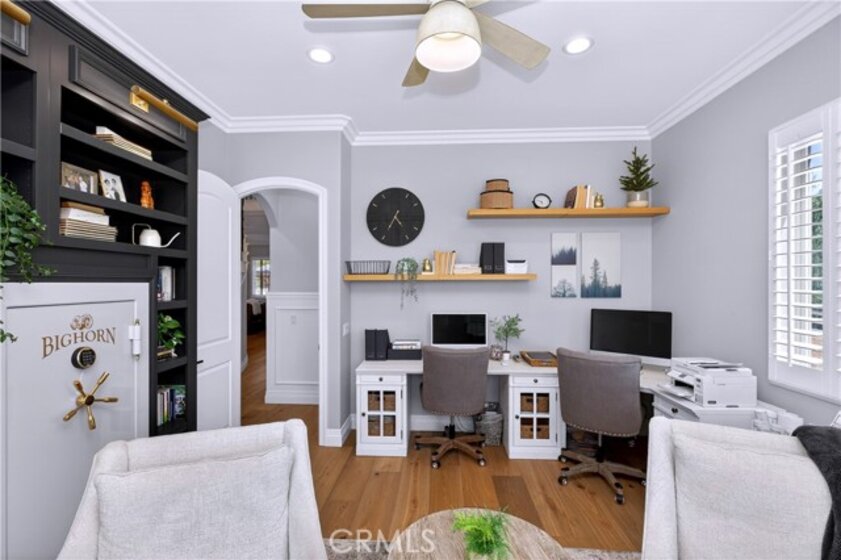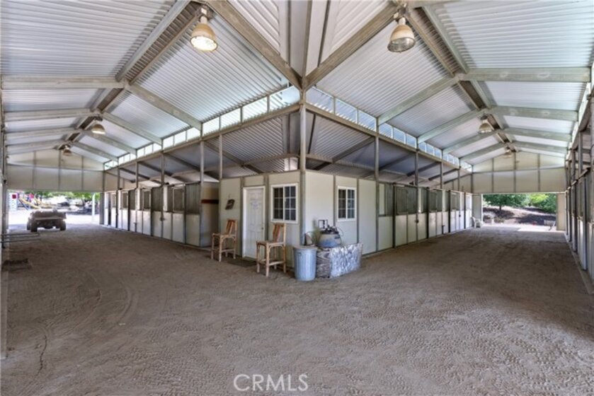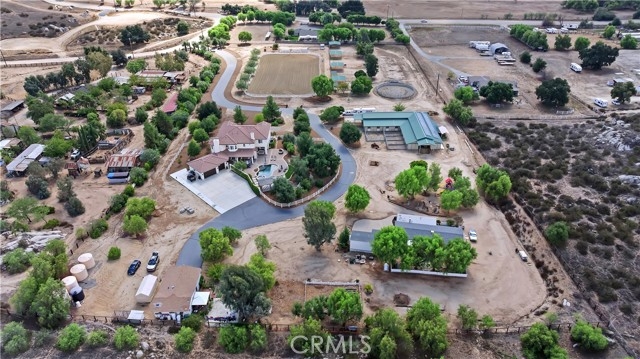 Exceptional Horse Ranch in the Heart of Temecula Wine Country Welcome to Fallen Oak Ranch—an extraordinary equestrian estate perfectly situated in Temecula’s Wine Country, just minutes from award-winning wineries, restaurants, & shopping. The custom-built main residence blends rustic charm with modern sophistication. The designer chef’s kitchen is a showpiece with exposed brick walls, sleek quartz counters, a rich wood-topped island with built-in storage, farmhouse sink, & top-of-the-line stainless appliances including a professional-grade range & oversized refrigerator. Gold hardware, custom cabinetry, & designer lighting create a warm yet refined atmosphere—ideal for entertaining or everyday living. The formal dining room is timeless & inviting with custom wainscoting, soft wallpaper, exposed beams, & a statement chandelier. Natural light pours through plantation shutters onto warm wood floors & a built-in buffet with open shelving—perfect for elegant dinners or festive gatherings. The family room offers relaxed sophistication with a stone fireplace, custom built-ins, & natural light. Plantation shutters, crown molding, & wood floors complete the picture, creating a space that’s both stylish & comfortable. The home includes five spacious bedrooms, five baths, & an office. The luxurious primary suite features a cozy fireplace, wood-paneled ceiling, dual walk-in closets, & a spa-inspired bath with jacuzzi tub & large shower. Additional highlights include surround sound, plantation shutters, dual A/C units, & expansive covered patios for outdoor entertaining. A separate manufactured home offers 2 bedrooms, 2 baths, an office, covered patios, & enclosed yard—ideal for guests, staff, or rental income. Equestrian facilities are top-tier with a Blue Ribbon barn offering 16 stalls (8 with runs), automatic waterers, fly spray system, tack room, office, & two wash racks. Riders will love the lighted arena (approx. 130x250)), 60’ round pen, hot walker, & six large outdoor pens with shelters. Designed for professional or recreational use, it’s a horse lover’s dream. Sustainably equipped with owned solar (68 panels, 55 kWh storage), high-producing well with five holding tanks, & RV hookups with 50-amp service & waste dump. Fully fenced & gated, the ranch offers peace, privacy, & stunning views of the surrounding hills. Fallen Oak Ranch combines elegance, comfort, & functionality, an exceptional opportunity to own one of Temecula’s premier horse properties.