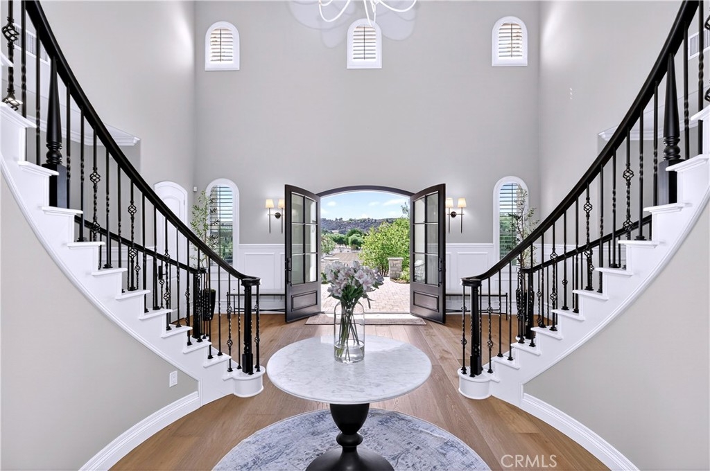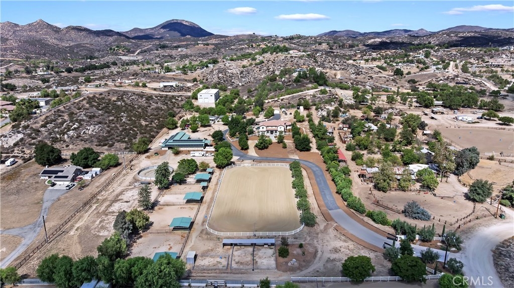 Exceptional custom estate in the Heart of Temecula Wine Country Welcome to Fallen Oak Ranch—an extraordinary equestrian estate perfectly situated in Temecula’s Wine Country, just minutes from award-winning wineries, restaurants, & shopping. The custom-built main residence blends rustic charm with modern sophistication. The designer chef’s kitchen is a showpiece with exposed brick walls, sleek quartz counters, a rich wood-topped island with built-in storage, farmhouse sink, & top-of-the-line stainless appliances including a professional-grade range & oversized refrigerator. Gold hardware, custom cabinetry, & designer lighting create a warm yet refined atmosphere—ideal for entertaining or everyday living. The formal dining room is timeless & inviting with custom wainscoting, soft wallpaper, exposed beams, & a statement chandelier. Natural light pours through plantation shutters onto warm wood floors & a built-in buffet with open shelving—perfect for elegant dinners or festive gatherings. The family room offers relaxed sophistication with a stone fireplace, custom built-ins, & natural light. Plantation shutters, crown molding, & wood floors complete the picture, creating a space that’s both stylish & comfortable. The home includes five spacious bedrooms, five baths, & an office. The luxurious primary suite features a cozy fireplace, wood-paneled ceiling, dual walk-in closets, & a spa-inspired bath with jacuzzi tub & large shower. Additional highlights include surround sound, plantation shutters, dual A/C units, & expansive covered patios for outdoor entertaining. A separate manufactured home offers 2 bedrooms, 2 baths, an office, covered patios, & enclosed yard—ideal for guests, staff, or rental income. Foreman's quarters with 2/1 bath. Equestrian facilities are top-tier with a Blue Ribbon barn offering 16 stalls (8 with runs), automatic waterers, fly spray system, tack room, office, & two wash racks. Riders will love the lighted arena (approx. 130x250)), 60’ round pen, hot walker, & six large outdoor pens with shelters. Sustainably equipped with owned solar (68 panels, 55 kWh storage), high-producing well with five holding tanks, & 2 RV pads with hookups with 50-amp service & waste dump. Fully fenced & gated, the ranch offers peace, privacy, & stunning views of the surrounding hills. Fallen Oak Ranch combines elegance, comfort, & functionality, an exceptional opportunity to own one of Temecula’s premier horse properties.