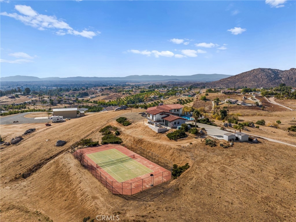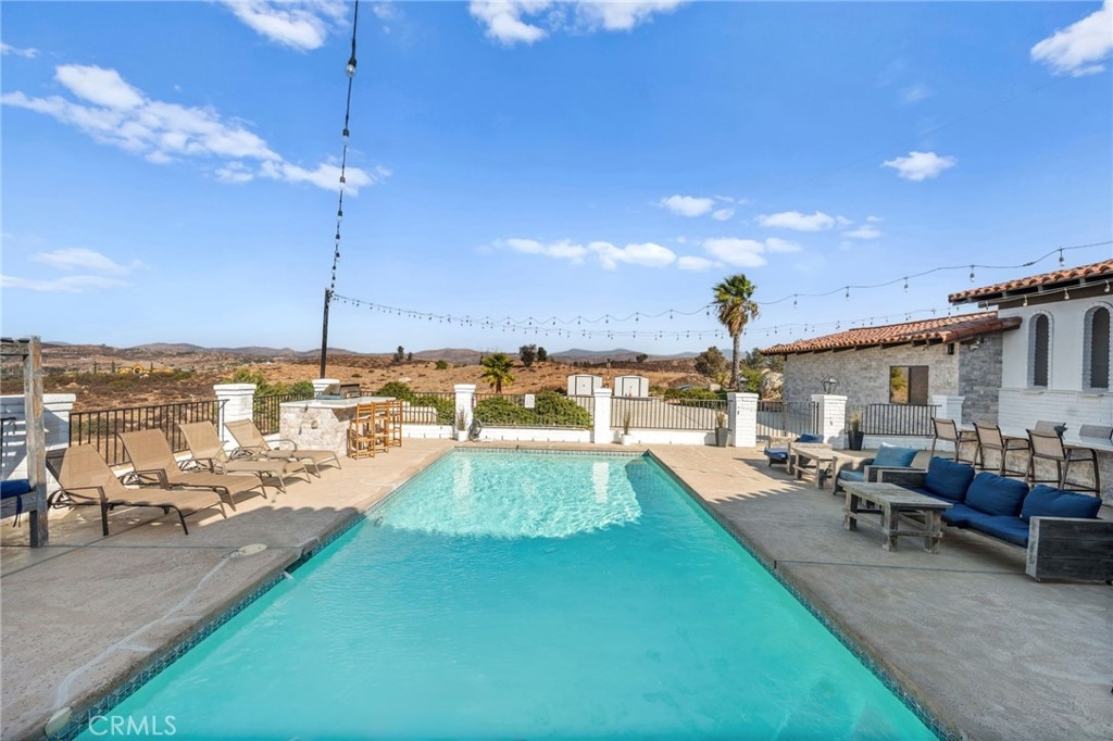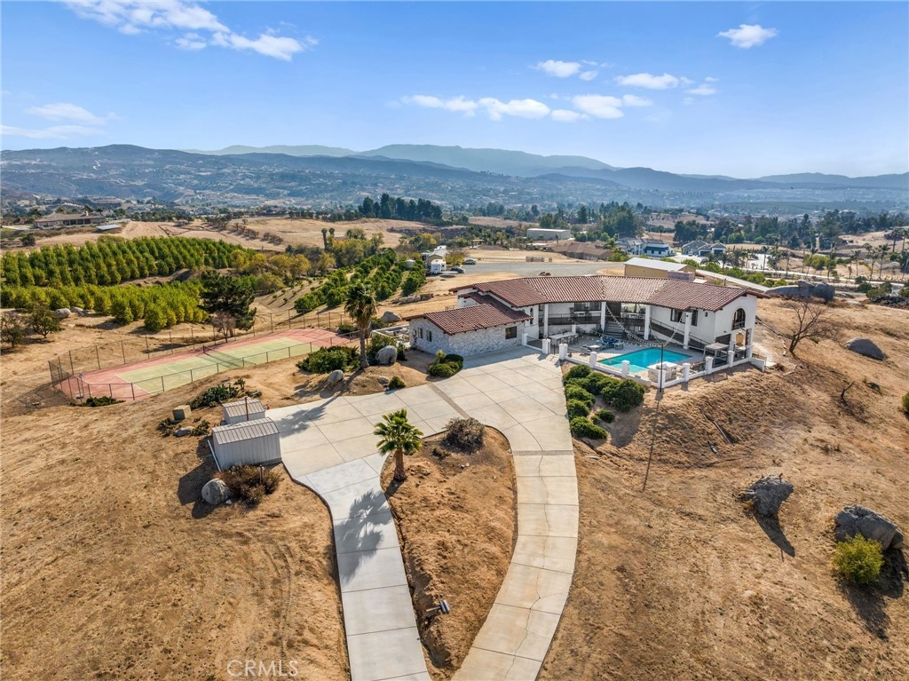 HUGE PRICE DROP FOR QUICK SALE. Lowest Price Per Square Foot in Wine Country. Pool | Tennis Court | Views | 2-Bedroom ADU | Brand New Windows | 5,518 Sq Ft + SO much more! Experience the ultimate in Wine Country living with this breathtaking custom home, perfectly situated on nearly 8 acres of usable land. Offering panoramic views of rolling vineyards, majestic mountains, and vibrant sunsets, this exceptional property is a rare gem. Designed for both luxury and functionality, the home boasts a resort-style backyard featuring a sparkling pool and an outdoor barbecue area—perfect for entertaining while enjoying the spectacular surroundings. The expansive front patio, elegantly finished with stylish tile, wraps around the home and provides a serene space to take in the picturesque scenery of Temecula’s renowned Wine Country. The multi-level interior is thoughtfully designed for multi-generational living, offering the convenience of a single-story layout on both levels. Throughout the home, you’ll find exquisite custom pitched wood ceilings, rich wood and tile flooring, and an abundance of natural light. Recently upgraded windows enhance energy efficiency and showcase the breathtaking views from every room. Adding to its incredible appeal, this property includes an attached, fully renovated 2-bedroom, 1-bathroom casita—a fantastic income-producing opportunity. The casita features modern shaker cabinets, sleek quartz countertops, herringbone-style flooring, and stunning stackable sliding doors that open to a private patio with a cozy fire pit. This patio overlooks the fully fenced tennis court, creating a private retreat for guests or tenants. The property is conveniently connected to public water and includes an additional storage tank for added peace of mind. Located within the highly sought-after Temecula School District and just a short drive to Temecula’s top-rated wineries, this estate offers a perfect blend of tranquility, elegance, and investment potential. Don’t miss the opportunity to own this exquisite Temecula Wine Country estate—schedule your private showing today!