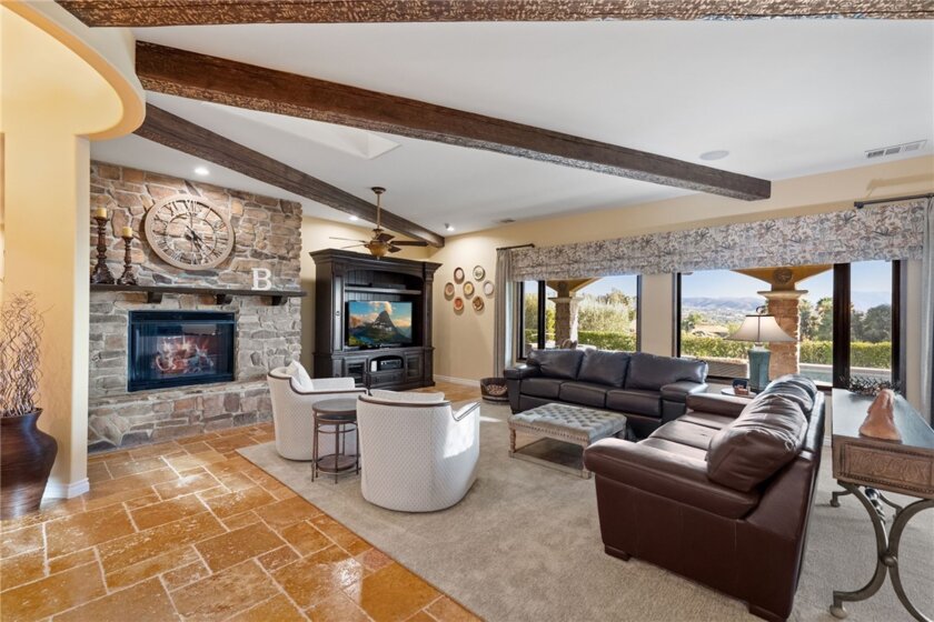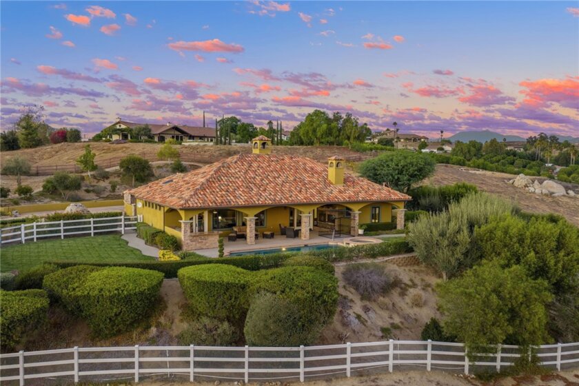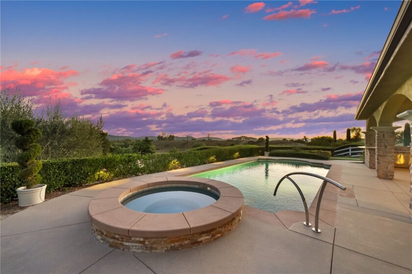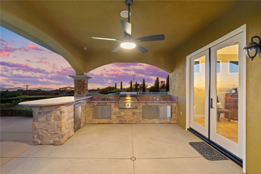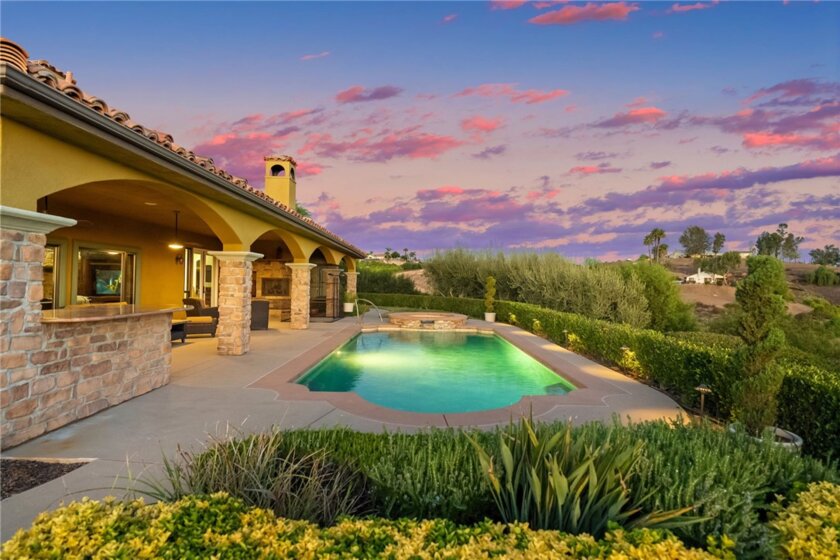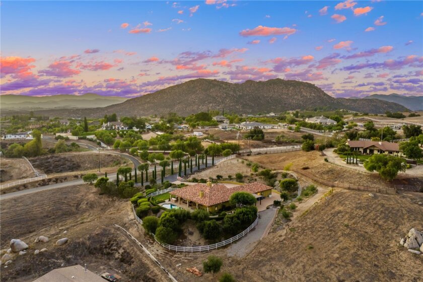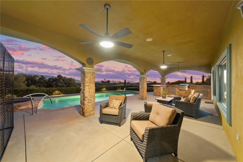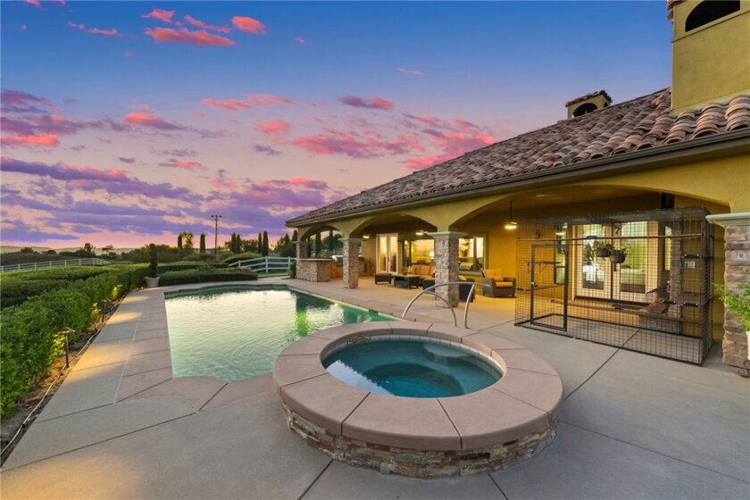 Exceptional Single-Story Wine Country Estate! Discover a truly one-of-a-kind single-story home set behind a private double-gated entrance in the heart of Temecula’s renowned wine country. Immaculate inside and out, this residence captures sweeping sunrise and sunset views across 2.74 acres of fully usable land, offering rare privacy and room to expand. Built in 2006, the home features three bedrooms and three-and-a-half bathrooms, plus an oversized three-car garage with soaring ceilings. Thoughtful upgrades include a reverse-osmosis whole-house water system, water softener, new windows, and a Generac whole-home backup generator tied directly to the electrical panel for peace of mind. The great room showcases automatic blackout blinds, a whole-house surround-sound system, and two elegant fireplaces, creating a welcoming environment for everyday living or entertaining. Outdoor amenities rival a private resort. A sparkling saltwater pool and spa overlook breathtaking sunsets, while a covered patio with a built-in barbecue kitchen and abundant seating makes entertaining effortless. A second patio features a new Alumawood cover, ideal for relaxed gatherings. The grounds boast lush, vibrant landscaping with a fully renovated sprinkler system, extensive lawn areas, and ample level space for future additions such as a vineyard, guest house, or equestrian facilities. Practical details enhance convenience and security: a newly poured asphalt driveway, a Spanish-style tile roof, and a double-gate design with automatic entry. Two recently installed air-conditioning units and a newer furnace ensure year-round comfort. Abundant RV and boat parking with hookups adds flexibility for outdoor enthusiasts. Situated in a premier section of wine country close to both the north and south wine trails, this property combines unmatched privacy with easy access to Temecula’s celebrated wineries, dining, and events. Homes of this caliber rarely come to market. With its striking location, luxurious upgrades, and endless possibilities, this estate is truly one of a kind and will not last long.