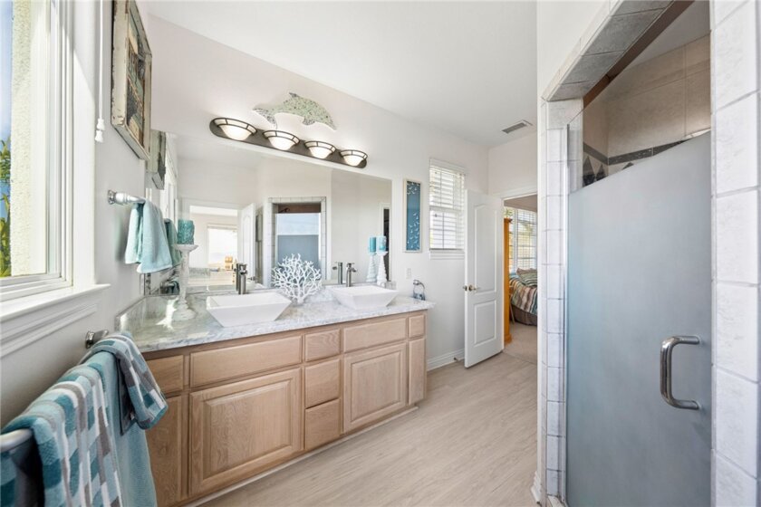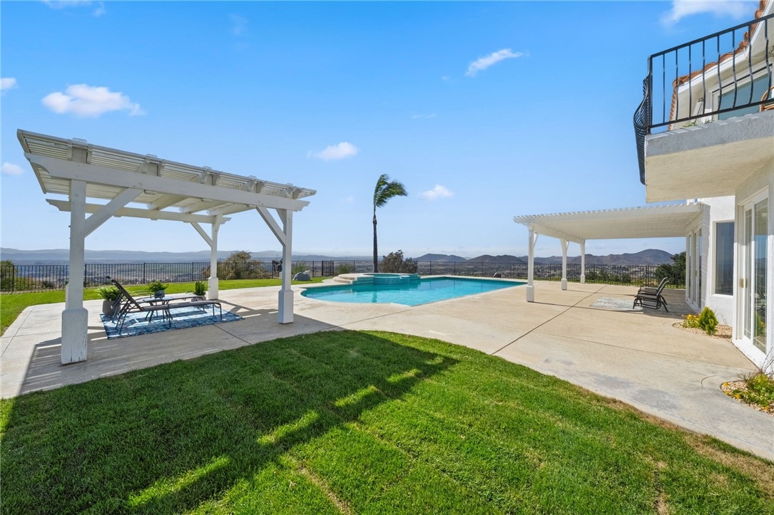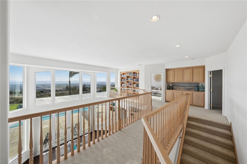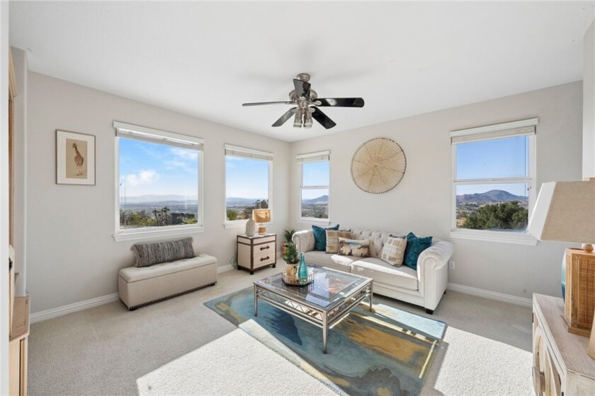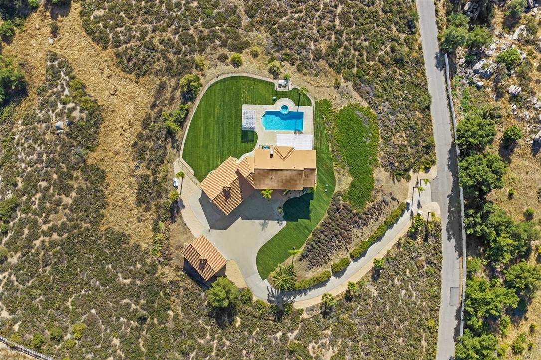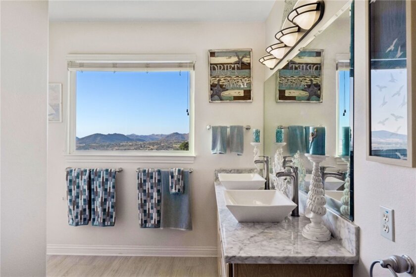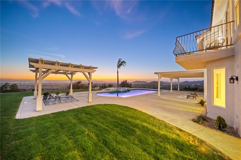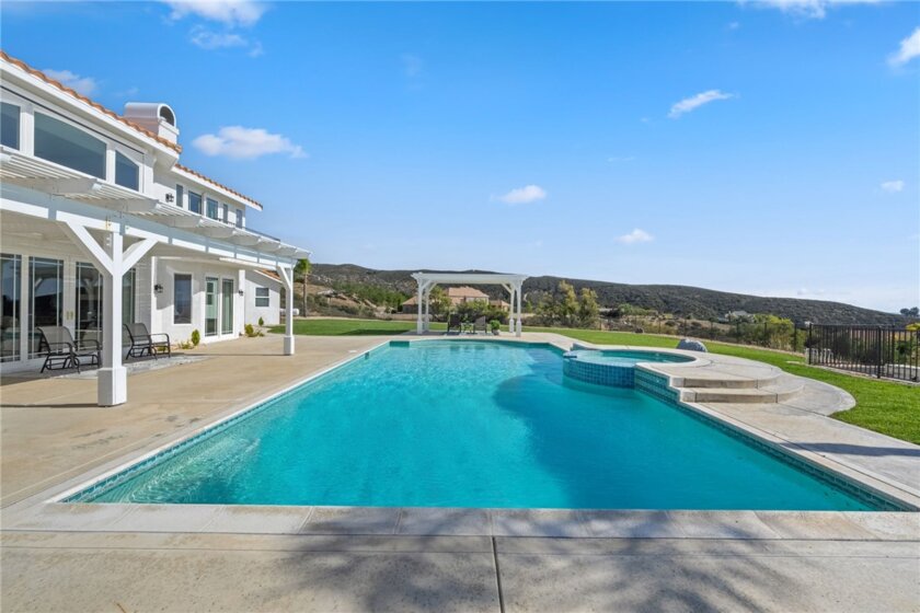 Welcome to this exceptional home in one of Temeculas most desirable locations, perched on top of a hill in Glen Oaks. With panoramic sunset views, city lights and hot air balloon sightings, this home offers a lifestyle that is truly hard to replicate. Situated on nearly 5 acres, this home was built in 2001 with a serene setting with freshly landscaped front and back lawns. The backyard is an entertainer’s dream, complete with a sparkling 43x20 pool and spa, all perfectly positioned to take in the views. Large windows throughout the home flood the interior with natural light and frame the scenery from nearly every room, while 20 foot ceilings create an open and inviting atmosphere. Spanning 4,230 sq. ft. this home features 5 bedrooms and 3.5 bathrooms, including two conveniently located downstairs bedrooms, along with a full bathroom and a guest bathroom. As you enter, you’re immediately welcomed by views of the backyard, the pool, and the bright open layout, with a central fireplace connecting the family and dining rooms. An additional downstairs room offers the perfect space for a home office with inspiring views. Car enthusiasts and those desiring extra space will appreciate the garage setup, featuring an oversized 3 car garage, an additional 2 car garage with separate access, and a detached 3 car garage, ideal for an ADU, Airbnb, workshop, or additional storage, bringing the total to 8 garage spaces. Upstairs, the layout continues to impress. The primary suite is privately situated and includes two large walk in closets, a fireplace, private balcony, spacious bathroom with dual vanities, and a versatile bonus room ideal for a nursery, office, or sitting area, all overlooking the stunning landscape. Just outside the primary suite is a conveniently located laundry room. Across the catwalk, you’ll find two additional bedrooms, each featuring spacious walk in closets and connected by a Jack and Jill bathroom. Just outside the bedroom is a library style bookshelf with lighting and continued views completing this thoughtfully designed space upstairs. Original owners have made numerous updates adding comfort and efficiency to the home. Ideal location in Glen Oaks, with paved roads, without the burden of HOA, this home offers low taxes, close proximity to wineries, and a setting that captures the very best of Temecula living. This is truly a special property that must be experienced in person. This is truly a special property that must be experienced in person.