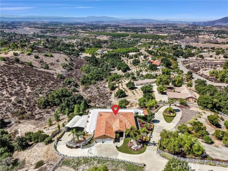 Welcome to your dream estate in the prestigious GlenOak Hills community of Temecula - this beautiful home has been meticulously maintained, original-owner, custom gated residence! Views! Views! Views! Featuring over 7500 square feet of total usable living space. The main level boasts over 3800 square feet with 3 spacious bedrooms, 3.5 bathrooms, an office/den, family room with fireplace, formal living with fireplace, formal dining room, huge laundry room with tons of storage, chef’s kitchen with breakfast bar/nook, walk-in pantry and large island with prep sink. The fully finished basement/living space includes a full bath and boundless opportunities. Currently the basement is set up with an expansive bar, game room, gym, and workspace. This custom-built estate is situated on over 5 acres of land for endless views and privacy. There is a total of 8 garage spaces (3 spaces attached to the home), 1 enclosed RV garage, and 2 covered RV spaces. Low-cost solar to keep electricity prices down. Off of the kitchen/family room is a ginormous deck equipped with built-in fire pit and BBQ that is simply stunning! Extreme pride of ownership and no expense spared! Such an elegant home with all of the extra eye for details embracing crown molding, wainscoting, grand pillars, neutral decor, custom cabinetry and built-ins with so much storage. Located just outside of the Glen Oaks Hills HOA on a paved street. Come see this beauty today, you won’t be disappointed!