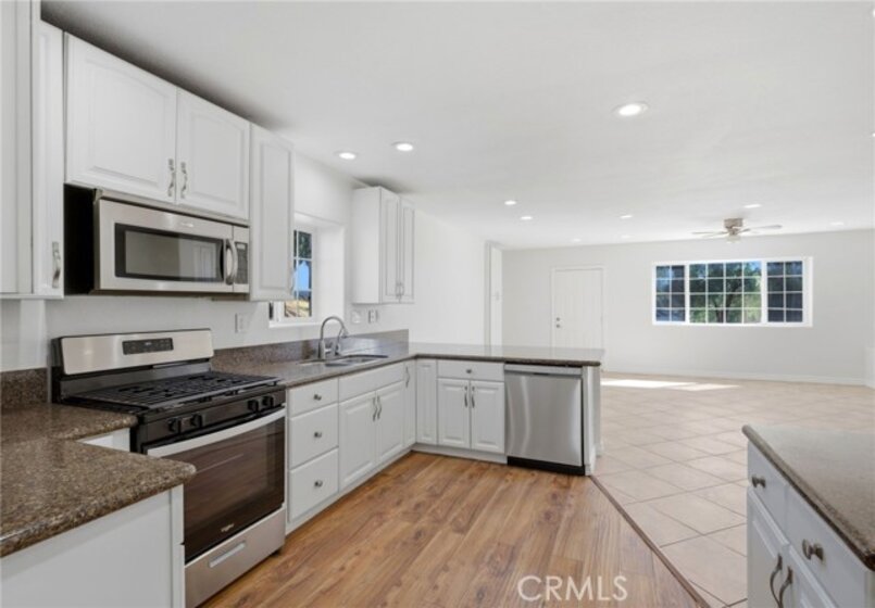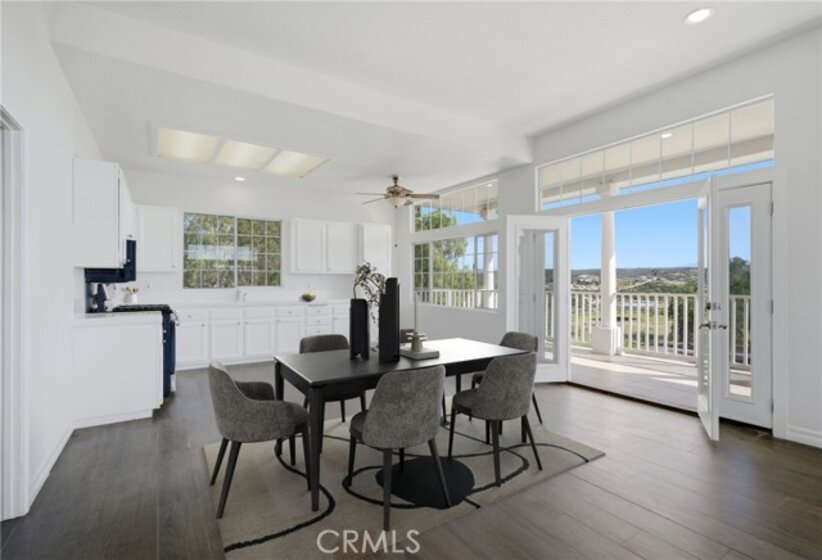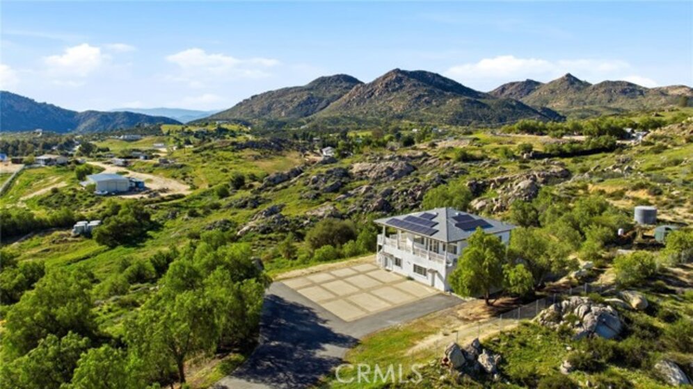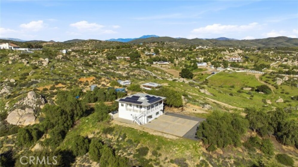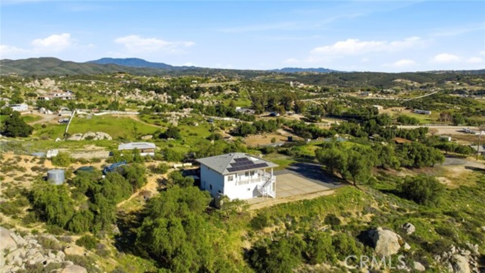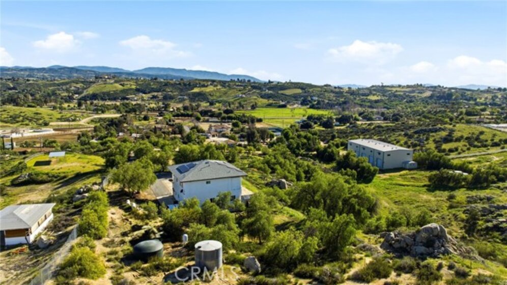 Opportunity knocks with this hidden gem located in the picturesque Temecula Wine Country, conveniently nestled between E. Benton Rd. and De Portola Road. This distinctive estate with freshly painted exterior features a single-family home with an attached ADU, thoughtfully designed as two separate units. The downstairs unit offers 1,600 sq. ft. of comfort, including three bedrooms, one and a half baths, a full kitchen, and spacious living and dining areas. A dedicated laundry room and access to a fenced backyard make this unit both functional and inviting, enhanced by modern upgrades like white cabinetry, stainless steel appliances, granite countertops, and stylish tile flooring throughout. Upstairs, you’ll find a bright and airy unit that boasts high ceilings and two bedrooms, one bathroom, kitchen, living and dining spaces and outdoor laundry room. Step outside to enjoy the large wraparound terrace, which offers breathtaking panoramic views of the surrounding wine country. The property is equipped with a paid solar system and a newer electrical panel, while the beautifully landscaped driveway lined with mature trees provides ample parking. Set on 8.34 acres of rolling hills, this estate also includes a substantial RV garage featuring four bays: one at 3,000 sq. ft. and three at 1,500 sq. ft. each, totaling an impressive 7,500 sq. ft. with soaring 40-foot ceilings. Recently appraised at $1.225 million in July 2025, the property comes with termite clearance, cleared septic and well certifications, along with a newly replaced well pump. Whether you envision an investment opportunity with multiple rental streams or a serene residence where you can live in one unit while renting out the other and the RV garage, this property offers tremendous potential. Some photos have been virtually staged to highlight the possibilities that await.