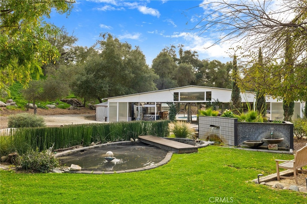 Set in the heart of Temecula Wine Country, just minutes from top rated wineries, this estate offers rare privacy, versatility & natural beauty across 6.33 acres. Established oak trees define the landscape, with a seasonal stream winding through the property & two walking bridges. The home is 3,552 sq ft & features 5 bedrooms & 3.5 bathrooms. The recently remodeled primary suite is a true retreat, showcasing a jetted spa tub, luxury shower with body jets & built-in speaker, a spacious walk-in closet with custom makeup vanity, ceiling fan, & expansive views of the surrounding oak forest. A guest bedroom offers a separate keyed entrance, en suite bathroom, & walk-in closet—ideal for visitors or multigenerational living. An upstairs bonus room provides additional space right off the bedrooms making it the perfect lounge area. The home is thoughtfully designed for comfort & efficiency, with ceiling fans throughout, a whole-house fan, dual-zone air conditioning with Wi-Fi-enabled controllers, whole-house vacuum, & a walk-in pantry. Additional spaces include an approximately 300-square-foot studio attached to the garage & a 575-square-foot indoor basement, neither included in the home’s square footage, as well as a second large basement with outdoor access & built-in storage. Major upgrades include an air-conditioning system replaced approximately five years ago & a newer water heater. A fully paid off solar system has consistently produced more electricity than the home requires. A koi pond with waterfalls & a footbridge sits around a manicured lawn, enhanced by a specialized filtration system that requires minimal maintenance. An approximately 1,800-square-foot air-conditioned barn with built-in speakers and a 3,000-square-foot pole barn with concrete floors and lighting provide exceptional flexibility for gatherings, hobbies, or storage. Market lighting & a saltwater pool with fountains create a resort-style atmosphere between the barns. With tons of flat space, usable acreage & existing infrastructure, the property also presents an excellent opportunity to be transformed into an equestrian estate, with lots of room for pastures, round pens, an arena, & additional equine facilities. This is a rare opportunity to own a private Wine Country estate that seamlessly blends natural beauty, thoughtful upgrades, & expansive, usable land in one of Temecula’s most desirable locations.