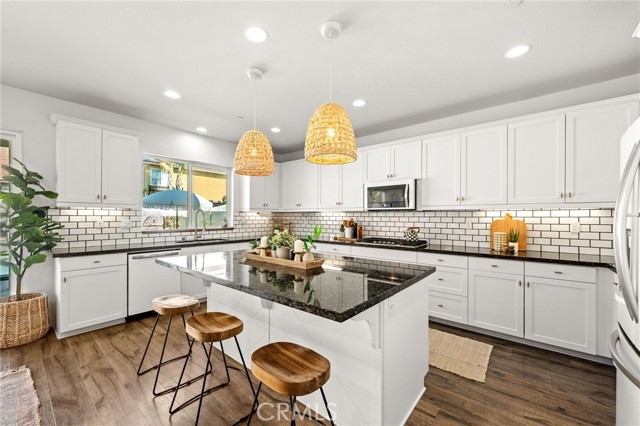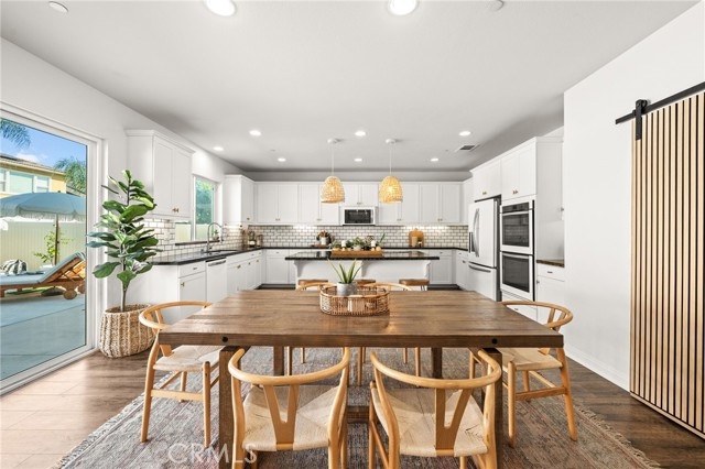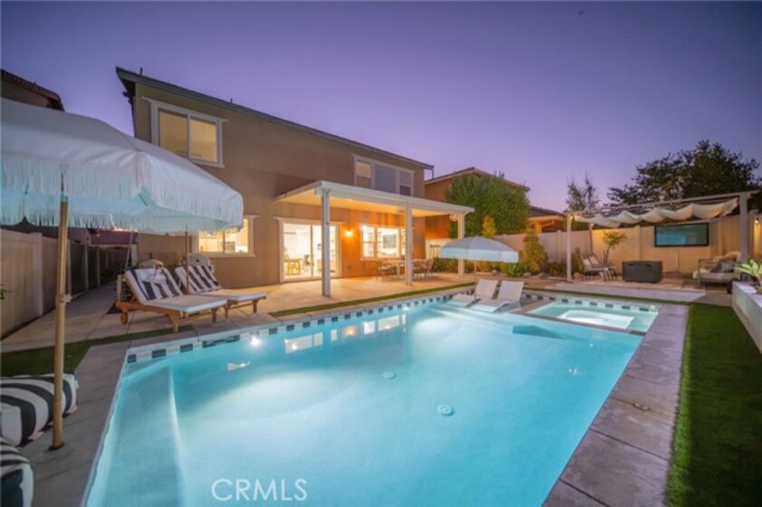 Rare Pool Home located in the gated community of Roripaugh Ranch, this spacious 3,344 sq ft home offers 5 bedrooms and 3.5 bathrooms with a layout that checks all the boxes. Downstairs you'll find a private guest suite with en-suite bath—ideal for visitors or multi-gen living. A large bonus room is also located on the first floor and is currently used as a game room, complete with custom barn doors for privacy—perfect as a home office, playroom, or media space. The wide open floor plan blends the kitchen, great room, informal dining, and formal dining areas, creating the perfect setting for entertaining or family gatherings. The kitchen features a large center island with seating, wrap-around granite counters, custom vinyl-wrapped appliances including a double oven, a Costco-sized pantry, and a picture window over the sink with views of the backyard. Upstairs you’ll find three generous secondary bedrooms, including one oversized room currently used as an office—offering plenty of flexibility. A built-in tech center just outside the bedrooms is perfect for homework or remote work. The primary suite features dual walk-in closets, dual sinks, a soaking tub, separate shower, and a dedicated vanity space. Laundry is also conveniently located upstairs. The backyard is the true highlight—designed to enjoy Temecula’s beautiful weather year-round. Relax or entertain with a private pool, spa, splash pad, BBQ, Alumawood patio cover, and an elevated seating area that feels like your own cabana retreat. Located just one block from the clubhouse and heart of the community, residents enjoy access to country club-style amenities including a 24/7 fitness center, Olympic-size pool, tennis courts, basketball court, pickleball, two parks, and miles of paved walking trails. With a low tax rate and proximity to top-rated Temecula Valley schools, it’s easy to see why Roripaugh Ranch is one of Temecula’s most desirable communities.