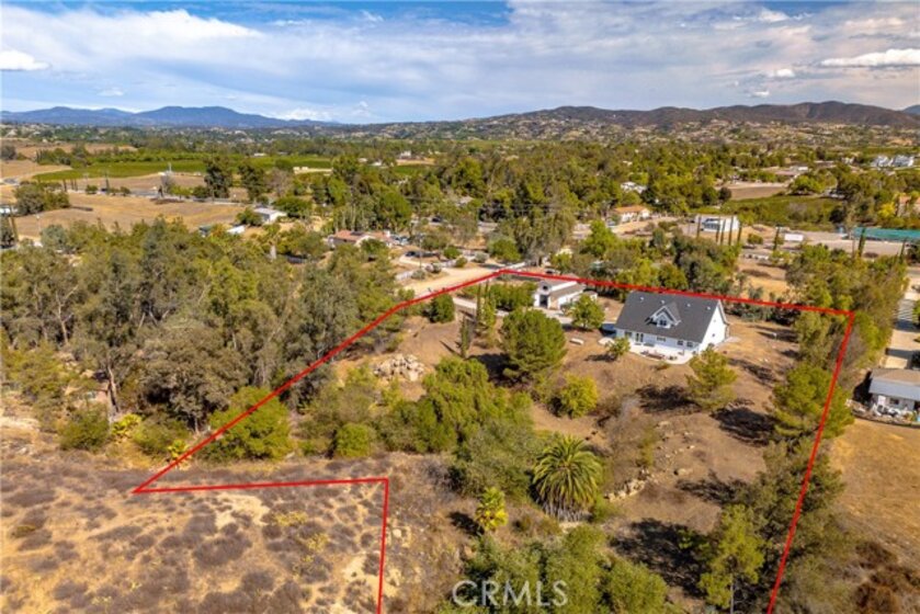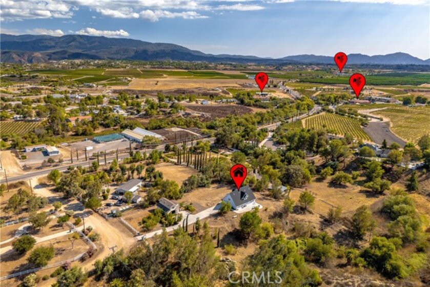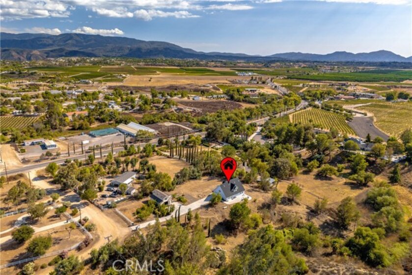 Country Living in Temecula Wine Country – Completely Remodeled Turnkey Home Welcome to this beautifully updated home offering country living just minutes from town. Situated on 2.43 acres this 3-bedroom, 2-bath home boasts 2,081 sq. ft. of living space, a 2-car garage, plus a 700 sq. ft. 2-story barn garage with loft. Every detail has been thoughtfully upgraded: new top-of-the-line composition roof, full septic system replacement, smooth coat walls & bullnose corners, fresh interior/exterior paint, dual-pane windows, hardwood flooring throughout, remodeled bathrooms with custom tile, new cabinetry, lighting. Additional upgrades include a tankless water heater, new A/C, new garage doors, crown molding, baseboards, and custom shutters. Enter the front door to find the living room, perfect room for entertaining, kitchen is open to the living room has plenty of cabinet space, bead board ceiling an island and window over the sink to enjoy the views of the backyard, the dining area is spacious and open to the kitchen with gorgeous reclaimed wood ceiling and hand honed beams, chair rail and wainscoting on the walls, and new french door leading to the backyard. There are two spacious bedrooms downstairs with a fully remodeled bathroom. Stroll upstairs, to find a second family room area or use the entire upstairs for a private primary bedroom living space. Primary bedroom is gracious in size, with 3 closets, large walk in, and two smaller closets, with a private bathroom ensuite that has been completely updated. The home has a large attic space for a potential 4th bedroom. Outdoors, enjoy the no-maintenance new Trex front porch with cedar tongue-and-groove ceiling, new 3,500 PSI concrete driveway, sidewalks, and back patio. The backyard has plenty of room for a pool. The property has a gated front entry with stone pillars, custom iron entry gate, and newer vinyl fencing in the front of the home. . The producing orchard includes cherry, nectarine, grapes, lemon, orange, plum, apricot, and more. Raised garden beds are ready for planting, and the lower acreage provides room for a garage, guest house, or outdoor entertaining space. Additional features, convert the barn to living space, seasonal stream and peaceful views, Hot air balloons overhead daily, close to wineries, shopping, dining, and top-rated Temecula schools. This property offers the perfect balance of rural charm and modern updates—truly turnkey and ready to enjoy.