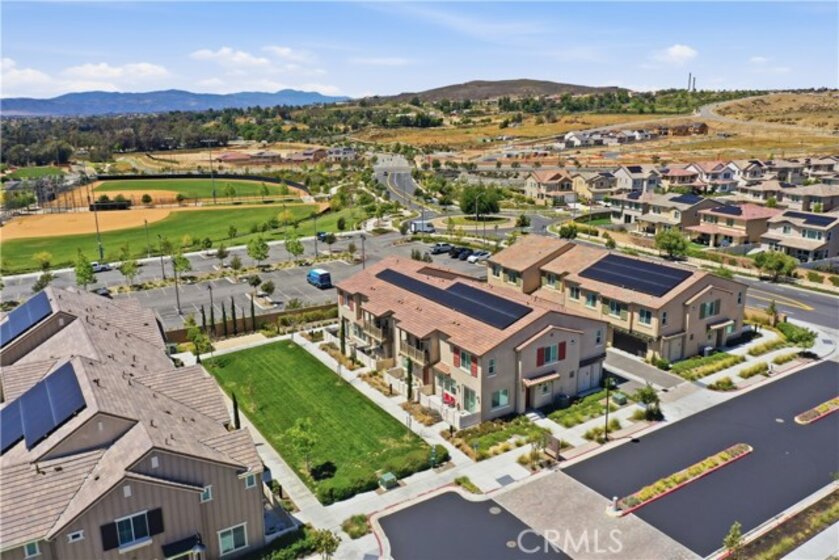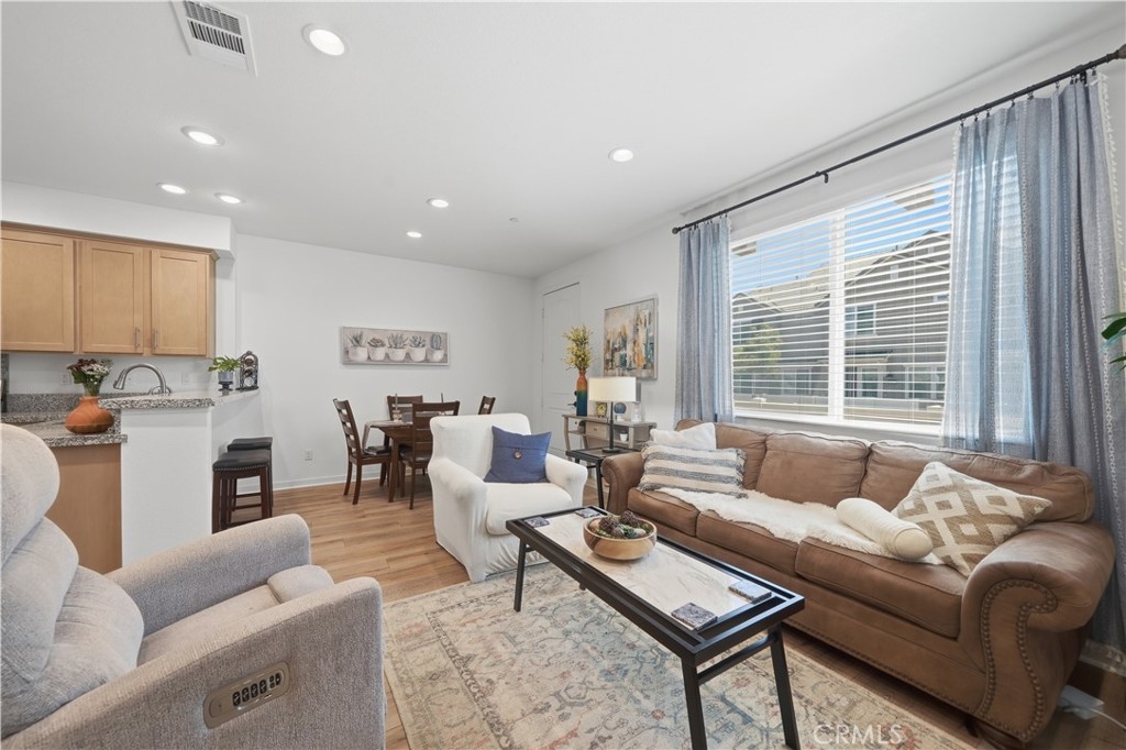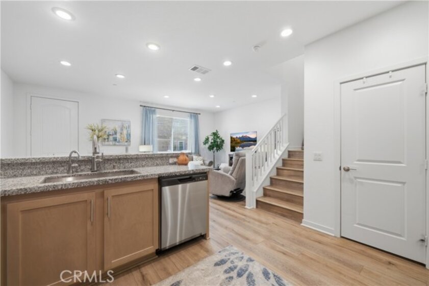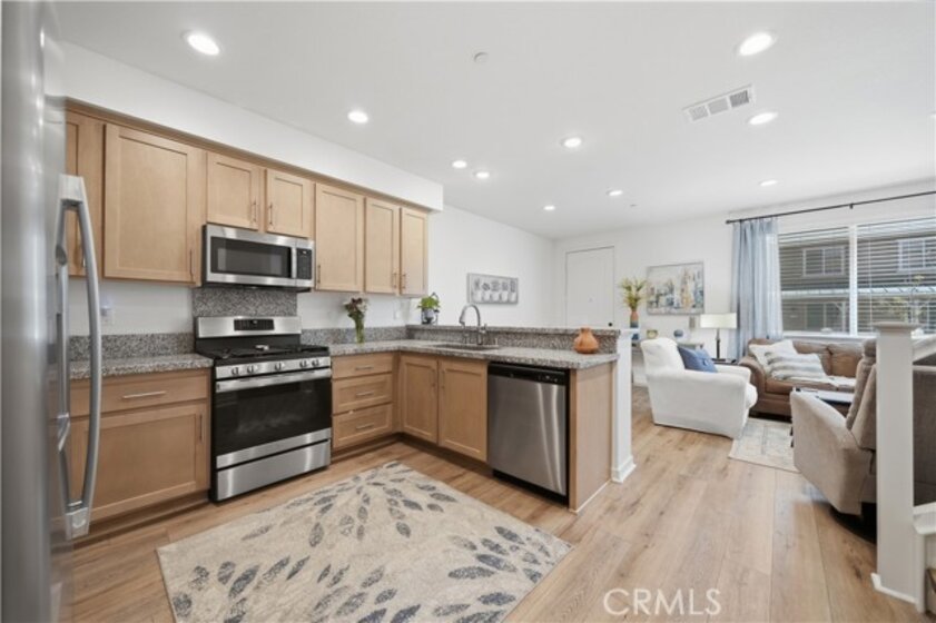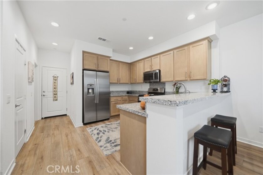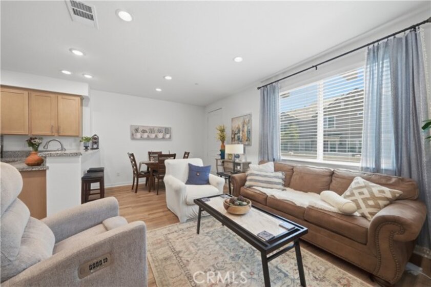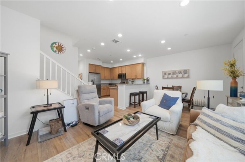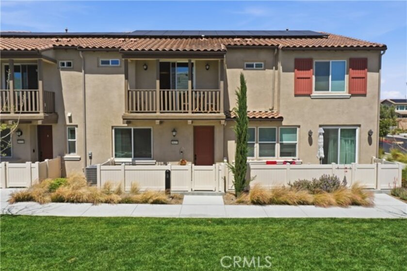 Private front porch entry sets the tone for this well-maintained 3-bedroom, 2.5-bathroom condo located in the highly desirable Sommers Bend community of Temecula. The main level offers an open-concept layout with a combined living and family room that flows directly into the kitchen, creating a nicely connected living space. The kitchen offers stainless steel appliances, granite countertops, bar seating, and ample cabinet storage—well-suited for entertaining. Luxury vinyl flooring runs throughout the main living areas. (very nice) A powder room and direct access to the attached garage are also located on the first floor. Upstairs, a spacious hallway leads to the primary suite, which features a private balcony with community views. The primary bathroom includes a separate tub and shower, dual vanity, and a large walk-in closet. Two additional bedrooms and a full hallway bathroom complete the upper level. Additional features include recessed lighting, Leased Solar, built-in elements, and a clean, well-cared-for interior. Residents of Sommers Bend have access to a range of amenities, including resort-style pools, clubhouse, fitness facilities, parks, walking trails, and community gathering spaces, all within close proximity to schools, shopping, and Temecula Wine Country! Welcome Home!