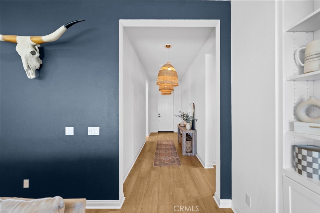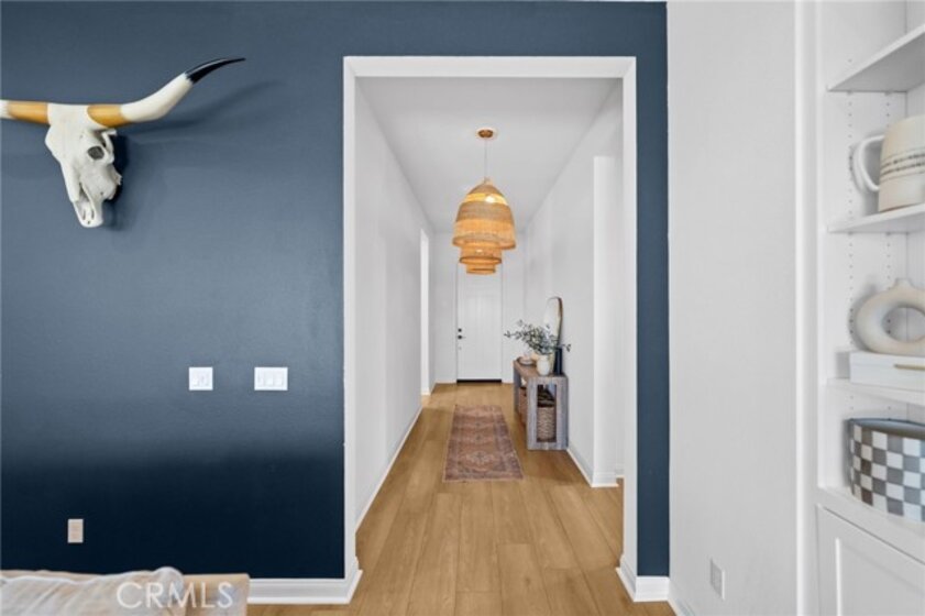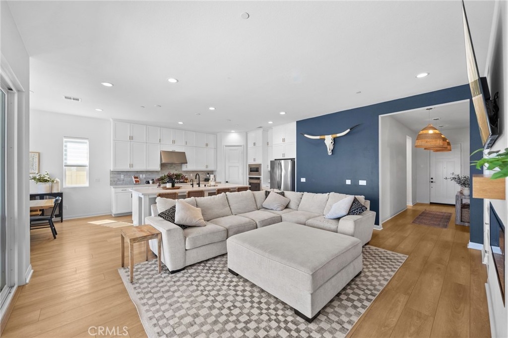 *PRICE IMPROVEMENT* This is a home that makes staying in feel like a luxury. From the moment you step through the front door, wide-plank flooring, soaring 10-foot ceilings, and statement lighting guide you into a space that feels bright, open, and thoughtfully designed. At the heart of the home, the kitchen sets the stage for everything from quiet mornings to lively gatherings. Custom cabinetry extends to the ceiling, velvet quartz counters bring understated sophistication, and WiFi-enabled Café appliances make cooking—and even preheating—effortless. A water purification system with softener and reverse osmosis ensures no detail has been overlooked. Natural light pours into the dining area, where windows frame lush greenery and make every meal feel like it comes with a view. The living room, anchored by its custom built-ins and modern fireplace wall, flows seamlessly to the California room and backyard. Here, endless views and a low-maintenance turf lawn expand your living space outdoors. Whether lounging in the shade, hosting around the fire pit, or watching the sunset, the backyard is a true extension of the home. The primary suite is a serene retreat, featuring velvet quartz counters, a soaking tub, seamless glass shower with floor-to-ceiling tile, and dual vanities. Additional cabinetry throughout provides ample storage, effortlessly checking a must-have box. Three secondary bedrooms are generously sized—two with plush carpet for comfort, and one with direct porch access, ideal as a playroom, office, or guest room. Even the garage has been elevated with epoxy flooring that keeps the space polished and functional, perfect for parking, storage, or weekend projects. Beyond the home itself, Sommers Bend delivers a true sense of community. With resort-style pools, relaxing spas, dog parks, and family-friendly events, there’s always something happening just outside your door. And with shopping, wineries, and parks nearby, you’ll experience the best of Temecula living without ever feeling far from home.
