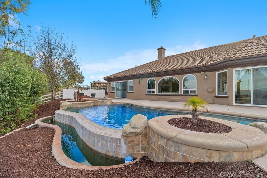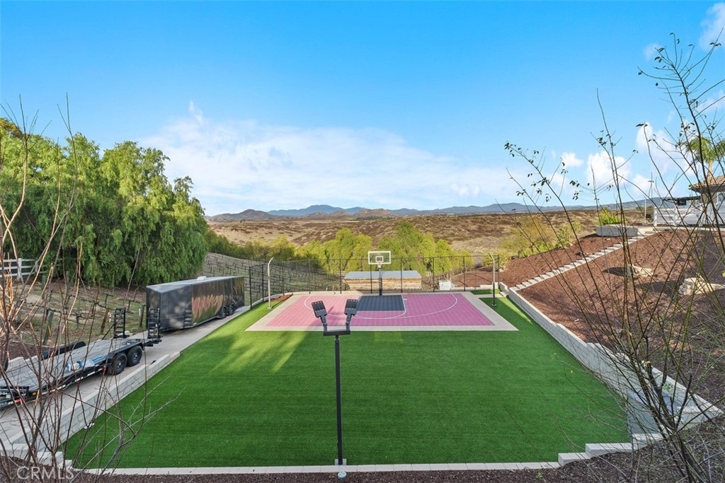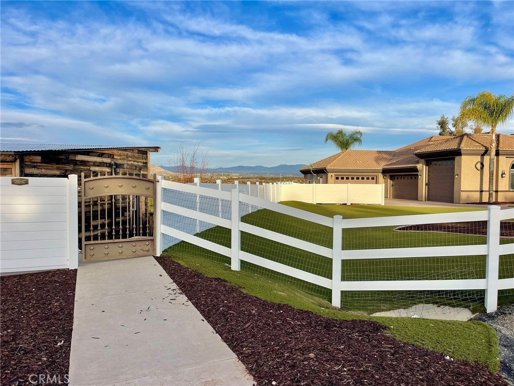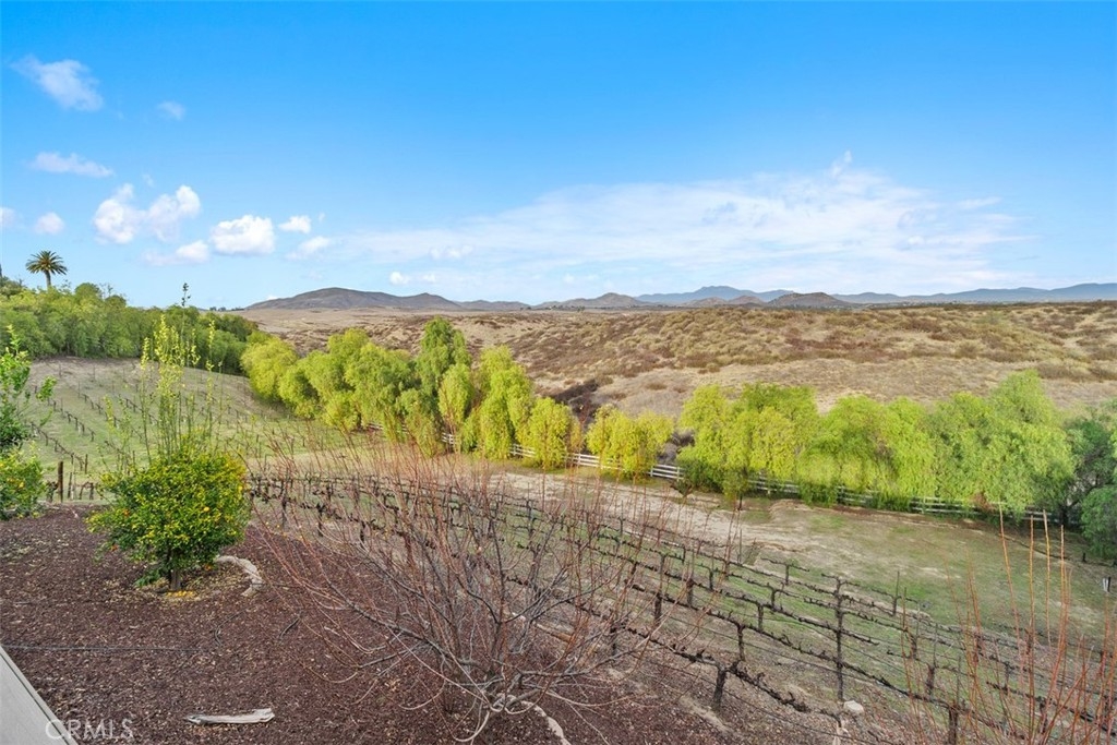Passing by several of Temecula’s most esteemed wineries on Rancho CA Rd and then proceeding onto Calle Contento N you will arrive at this remarkable gated single-story residence with stunning views at the end of a cul-de-sac in the heart of Temecula Wine Country. As you walk through the front entry doors you are greeted by a captivating view of the pool and the rolling hills setting a tone of elegance that permeates the interior.The infinity-edge pool with a sun shelf and spa overlooks the rolling hills behind the property and a built-in fire pit provides warmth and a cozy ambiance under the star-filled sky making it an ideal spot for evening leisure.The family room features a custom built-in entertainment center and fireplace. The open floor plan seamlessly connects the family room to the kitchen providing a spacious and inviting area for family and friends to congregate.The built-in BBQ area boasts two large granite bars, high-top seating, and two mounted outdoor televisions under a covered Aluma wood awning that overlooks your working vineyard and an assortment of fruit trees, creating the perfect setting for outdoor gatherings and celebrations.For the ultimate movie-watching experience, the fully equipped high-end home theater is furnished with luxury staged theater seating ensuring that you can enjoy films in style and comfort.The master bedroom and spacious bath share a cozy fireplace and feature a large walk-in closet with custom cabinetry and a central island.Three of the four bedrooms are equipped with en-suite bathrooms, providing convenience and privacy for family members or guests. The fourth bedroom is currently utilized as an office with a double door entry.For car enthusiasts, the 6+ car garage offers ample space for your collection. One of the 2-car garages is equipped with a tall (RV-sized) entry door, perfect for installing a car lift or additional storage.This magnificent estate offers ample space for RVs, off-road vehicles, boats, trailers, and more. The property also features a lighted sports court suitable for basketball, pickleball/tennis. There is a flat turf area with plenty of room for outdoor games. A she shed offers an ideal solution for hosting guests or providing a private retreat. With its private entry and situated to overlook the sports court and vineyard it ensures visitors can enjoy the tranquility of wine country alongside the excitement of outdoor activities. Features a living room, bedroom, full bath and kitchenette.