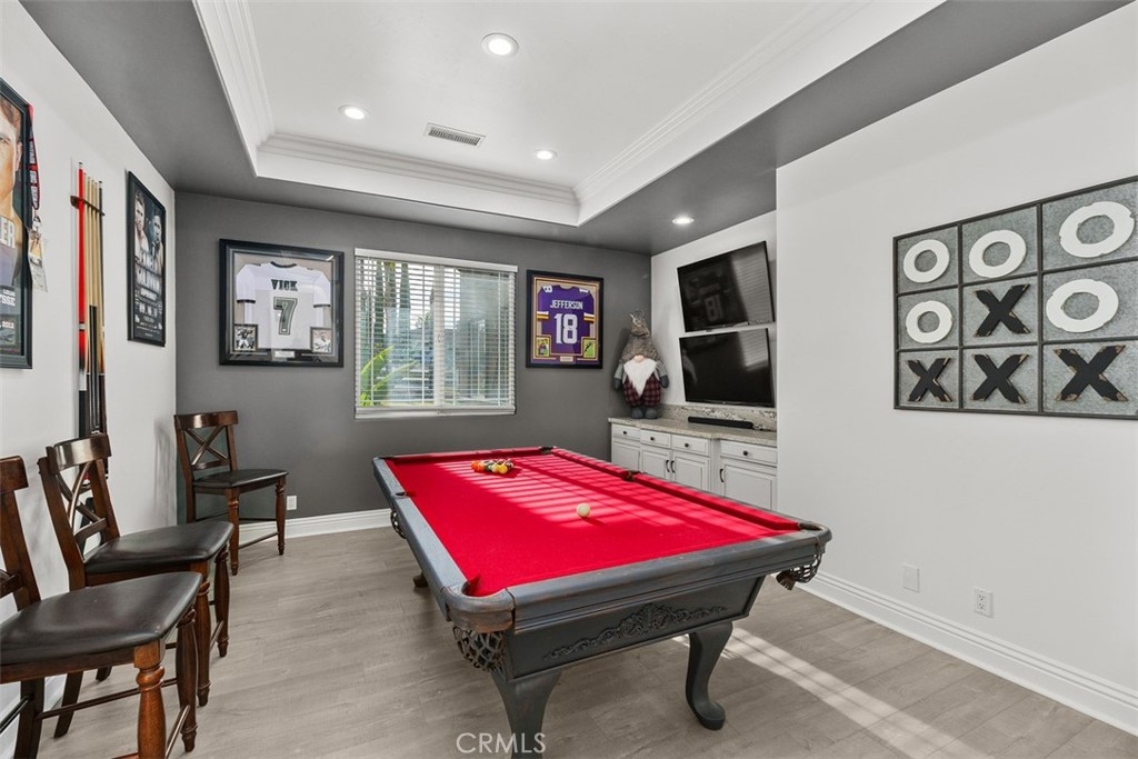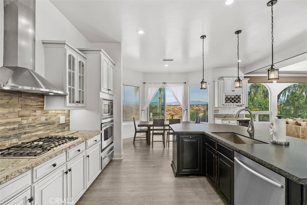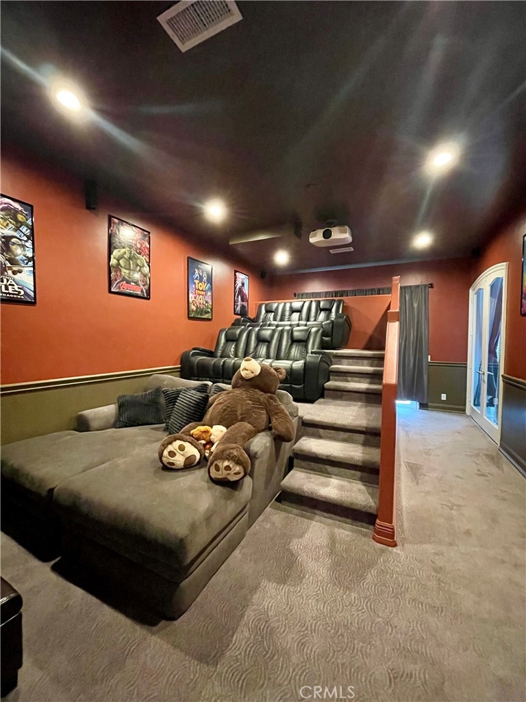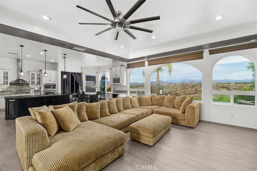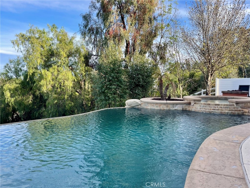 Passing by several of Temecula’s most esteemed wineries on Rancho CA Rd and then proceeding onto Calle Contento N you will arrive at this remarkable gated single-story residence with stunning views at the end of a cul-de-sac in the heart of Temecula Wine Country. As you walk through the front entry doors you are greeted by a captivating view of the pool and the rolling hills setting a tone of elegance that permeates the interior.The infinity-edge pool with a sun shelf and spa overlooks the rolling hills behind the property and a built-in fire pit provides warmth and a cozy ambiance under the star-filled sky making it an ideal spot for evening leisure.The family room features a custom built-in entertainment center and fireplace. The open floor plan seamlessly connects the family room to the kitchen providing a spacious and inviting area for family and friends to congregate.The built-in BBQ area boasts two large granite bars, high-top seating, and two mounted outdoor televisions under a covered Aluma wood awning that overlooks your working vineyard and an assortment of fruit trees, creating the perfect setting for outdoor gatherings and celebrations.For the ultimate movie-watching experience, the fully equipped high-end home theater is furnished with luxury staged theater seating ensuring that you can enjoy films in style and comfort.The master bedroom and spacious bath share a cozy fireplace and feature a large walk-in closet with custom cabinetry and a central island.Three of the four bedrooms are equipped with en-suite bathrooms, providing convenience and privacy for family members or guests. The fourth bedroom is currently utilized as an office with a double door entry.For car enthusiasts, the 6+ car garage offers ample space for your collection. One of the 2-car garages is equipped with a tall (RV-sized) entry door, perfect for installing a car lift or additional storage.This magnificent estate offers ample space for RVs, off-road vehicles, boats, trailers, and more. The property also features a lighted sports court suitable for basketball, pickleball/tennis. There is a flat turf area with plenty of room for outdoor games. A she shed offers an ideal solution for hosting guests or providing a private retreat. With its private entry and situated to overlook the sports court and vineyard it ensures visitors can enjoy the tranquility of wine country alongside the excitement of outdoor activities. Features a living room, bedroom, full bath and kitchenette.