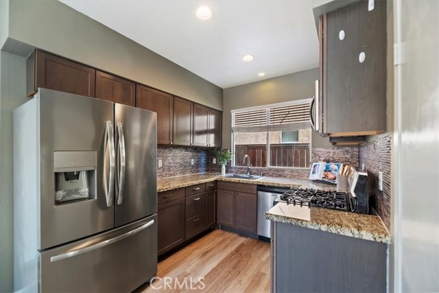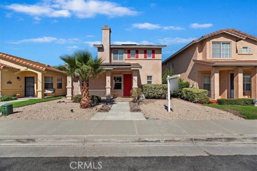 JUST REDUCED! DON'T MISS OUT!! NEW PICTURES W/ NEW FLOORING & PAINTING!! ASSUMABLE VA LOAN at 2.5% (Subject to Lender VA loan Approval). This home also qualifies for the Hero Homebuyer Credit which is designed to help our heroes purchase a home by offering up to $30,000 to cover closing costs and expenses. This charming two-story home is an absolute must-see for homebuyers looking for the blend of comfort, convenience, and affordability! Situated in a prime location, this home boasts a lower price per square foot, with LOW HOA fees and LOWER TAXES to make your monthly payments more manageable. Inside discover a cozy living room with large windows and a welcoming fireplace—ideal for relaxing or entertaining. The updated kitchen features beautiful granite countertops, modern fixtures, and stainless steel Frigidaire appliances, along with a closed pantry. The separate dining area is perfect for group meals or gatherings. For added convenience, there’s a guest bathroom downstairs. The kitchen seamlessly opens to a side yard shaded by a soft cover, perfect for outdoor dining or just enjoying the fresh air. Upstairs, the bedrooms offer peaceful retreats, with refreshed paint in most areas, stylish fixtures, and updated bathroom sinks and cabinetry. Plus, newer window blinds throughout the home help with energy efficiency, and the SOLAR system can help lower your electric bills! The home comes complete with a newer washer & dryer. A citrus fruit bush adds a touch of charm to your backyard. The location is a dream because close to excellent shopping, dining, and entertainment options. Close access to the 15 and 215 Freeways, and you're within the Temecula school district, with Chaparral High School just around the corner!