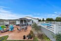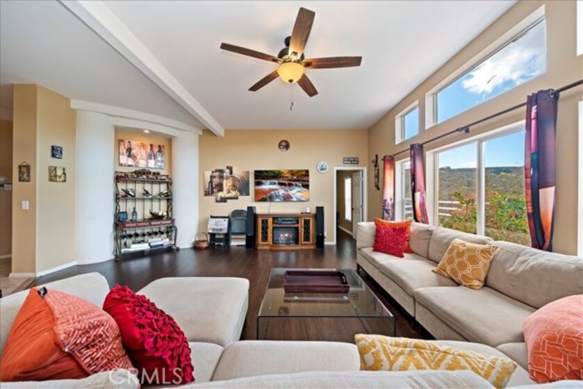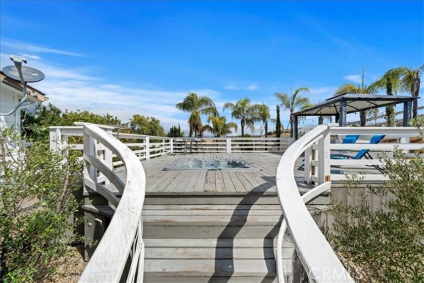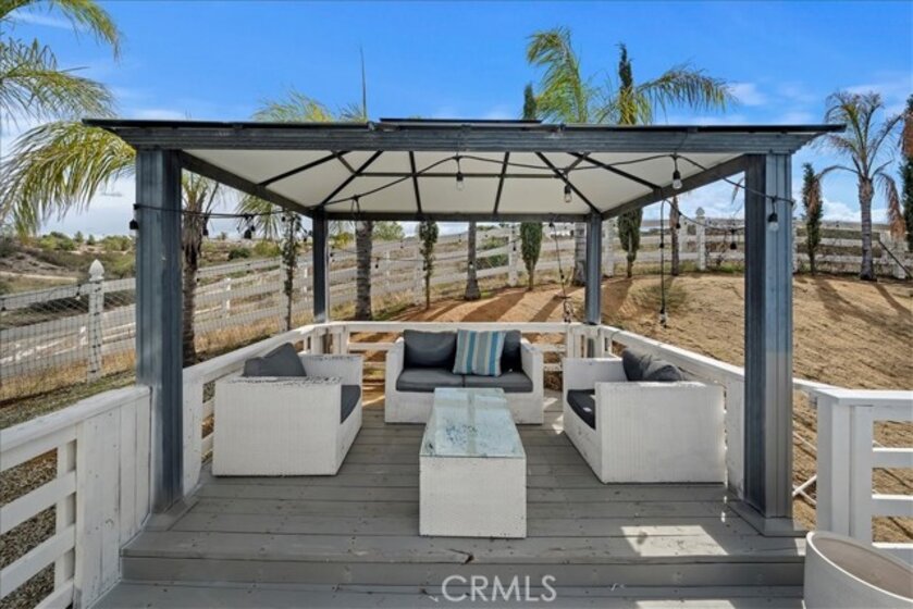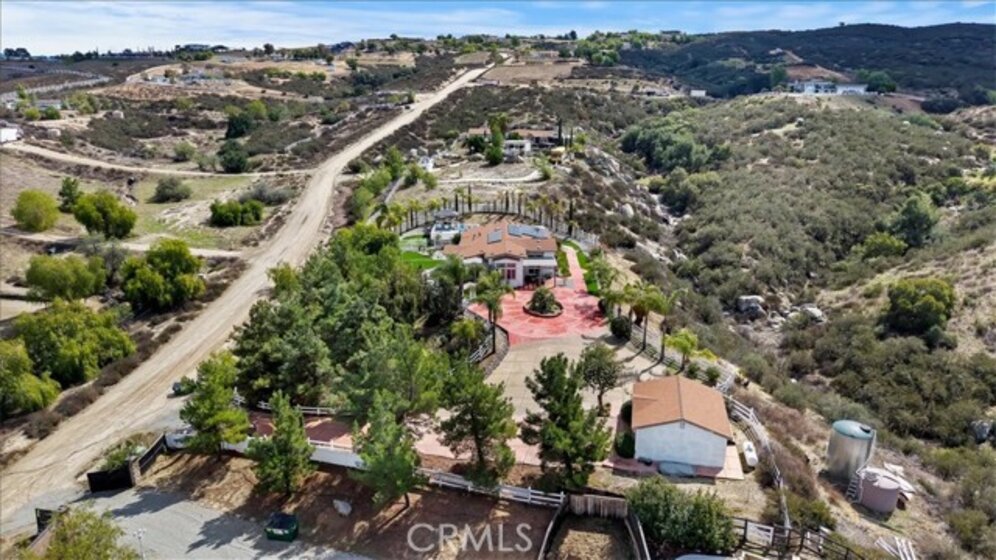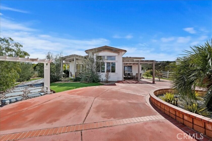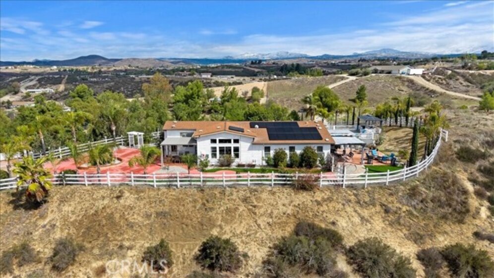 Beautiful single story home located amidst the peace and quiet of Spanish Hills Ranchos. Sitting on almost five acres this home offers a spacious single story floor plan with an abundance of room for entertaining or relaxing while enjoying the sweeping panoramic views. Located adjacent to Temecula Wine Country you experience the feeling of living in wide open spaces while still being close enough to vibrant Temecula. The home has an open feel with an inviting entryway with a spacious family room and separate dining room. The kitchen has tasteful white cabinetry and a center island providing plenty of cabinet and counter space. The primary bedroom suite opens directly onto the oversized attached deck where you can enjoy the private spa the cool evening breezes and magnificent star-filled skies at night. The primary bathroom includes a soaker tub, walk-in shower and walk-in closet. There are three additional bedrooms and 2 baths. The large custom deck is partially covered and in addition to the spa there is a BBQ and putting green. The low maintenance yard includes synthetic grass. Save on your electric bills with fully owned solar. The 360 degree yard wraps entirely around the home and features vinyl fencing and landscape irrigation. Entering onto the property there is a 20 foot iron gate with the driveway leading to a detached garage and approach to the home. The home is on a permanent foundation and is on septic, well and propane which is common to this equestrian community. The property offers the option of short term rentals and sits outside of the Temecula Wine Country Plan zone. Come on out for a visit and see what Spanish Hills Ranchos has to offer!