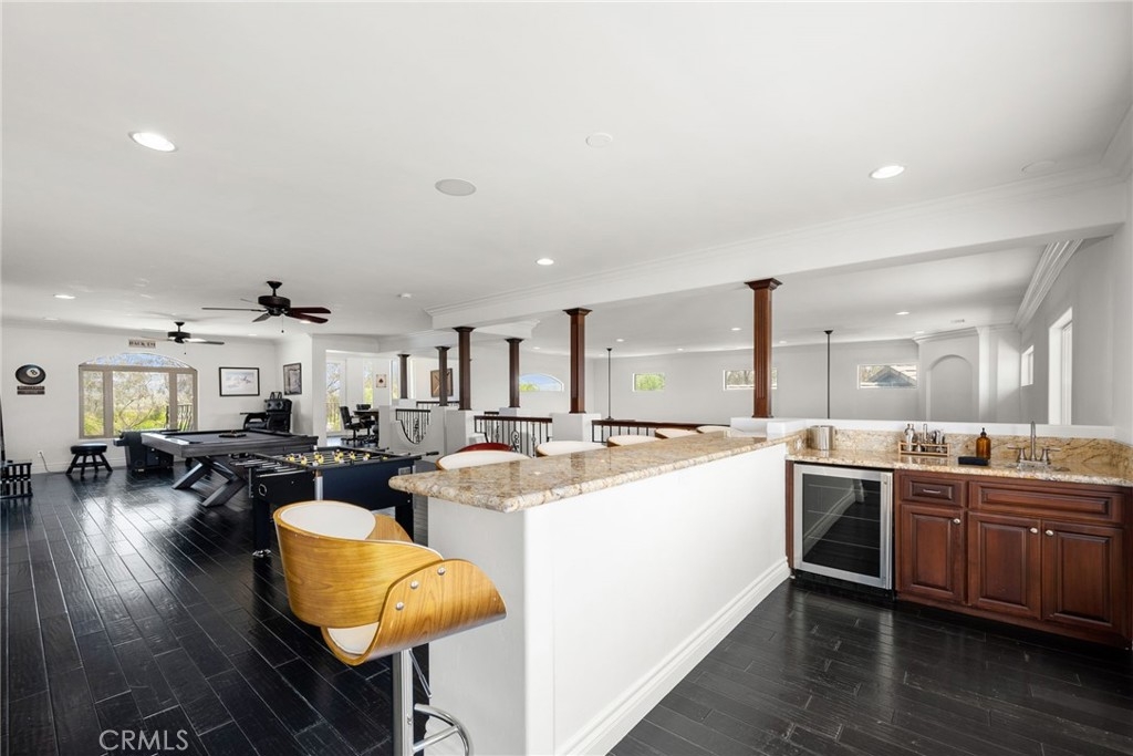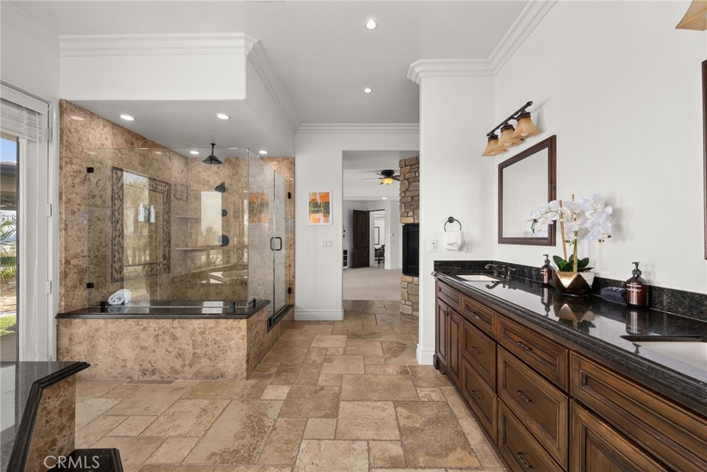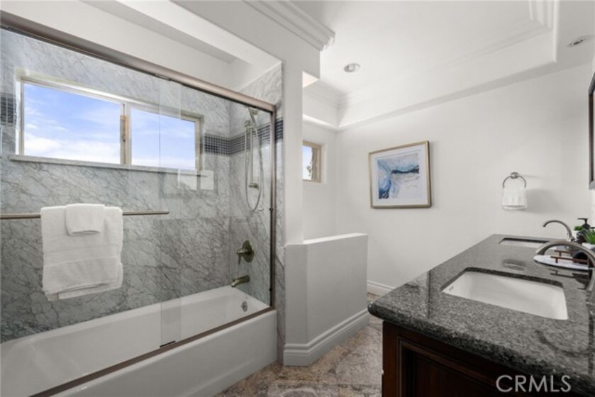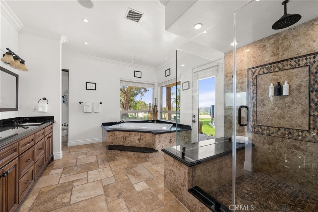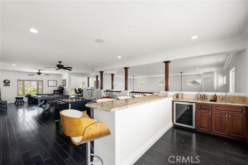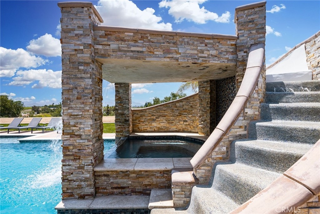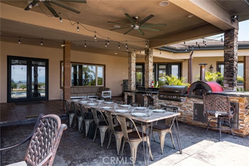 Situated on a quiet cul-de-sac in the heart of Temecula Wine Country, this privately gated estate offers breathtaking 360-degree views from one of the area’s most desirable elevated lots. Just minutes from the wineries and Old Town, it combines privacy with convenience. The home features 8 bedrooms and 9 bathrooms, including two main-level primary suites along with additional first-floor bedrooms. Upstairs offers en-suite guest rooms plus a private attached ADU located above the garages, complete with its own entrance, kitchen, living area, bedroom, bathroom, and laundry which is ideal for guests or multigenerational living. The open-concept layout showcases an expansive great room and a chef’s kitchen with high-end Thermador appliances, built-in refrigeration, and custom cabinetry. Designed for entertaining, enjoy a game room, view decks, and a third-floor bonus space perfect for a theater or private retreat. A spiral staircase connects the upper balcony to the backyard, enhancing seamless indoor-outdoor living. The resort-style backyard features a pool with waterfall, grotto, and slide, plus a fully equipped outdoor kitchen with BBQ, pizza oven, and outdoor dishwasher. A spacious garage with RV parking includes a versatile bonus room with its own bathroom, ideal for a home office or flex space, along with an oversized driveway accommodating large gatherings.