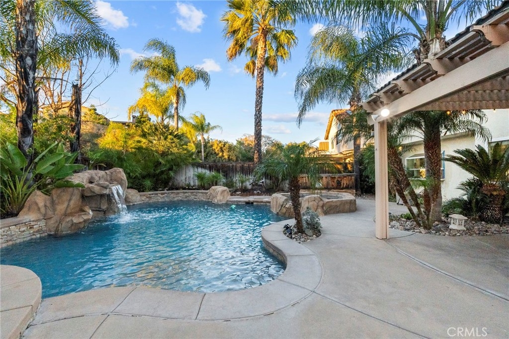 Welcome to 39774 Amberley Circle, a beautiful pool home offering the perfect blend of comfort and family friendly living. Enjoy a tropical style backyard with a sparkling pool, cascading waterfall, large spa, poolside BBQ island and gas fire pit ideal for entertaining or making lasting family memories. Inside, the home features a convenient downstairs bedroom and full bathroom plus three additional bedrooms upstairs including the primary suite. All three full bathrooms have been upgraded along with stylish light fixtures throughout. Recent improvements include new carpet, fresh paint and baseboards. Major updates within the last few years include a new water heater and a Lennox heating and air system with full warranties. Oh, and let's not forget NO HOA and LOW TAXES!!! Located close to schools, shopping, restaurants, the Temecula Promenade Mall and less than 10 minutes from award winning Temecula wine country. This is Southern California living at its finest luxury, comfort and location all in one exceptional home.