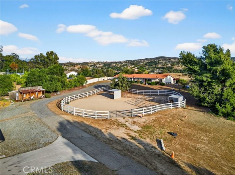 Wake up to sweeping views of Temecula's rolling wine country hills from this beautifully upgraded equestrian estate. The main home offers 1,502 sq ft of comfortable living with 3 bedrooms, 2 bathrooms, and an attached 3-car garage. A detached 800 sq ft permitted shop with two-car double roll-up doors, a private entrance, and its own water and electricity adds exceptional versatility — paired with an attached 400 sq ft covered, concreted, patio perfectly suited for grooming stalls or horse tack situated right next to your 2 stall shed row with turnouts. Together, these spaces bring thoughtful improvements, serious horse infrastructure, and Southern California's most coveted wine country backdrop together in one remarkable property. Inside the main home, every major system has been refreshed. All-new HVAC (2025), new attic insulation (2025), and a beautifully updated master shower (2025) means you can move in with confidence and zero deferred maintenance. The tile roof was replaced in 2013, the exterior freshly painted in 2016, and the pool completely renovated in 2014 with new equipment, plaster, tile, coping, and dual intakes. Powered by Leased Tesla Solar system — 14 panels plus a Powerwall battery backup — Horse lovers will feel right at home. The property features a brand-new 60×90 working ranch training arena (2025), a new 50-foot round pen (2025), a 1,000 sq ft paddock with two corner shelters, and a two-stall shed row with turnouts. The insulated tack room shed keeps your gear organized and protected year-round. Top it all off with a private orchard, a garden shed, RV parking with 30-amp power and water hookup, and those unobstructed wine country views stretching as far as the eye can see. Properties with this level of improvement, infrastructure, and scenery don't come along often.