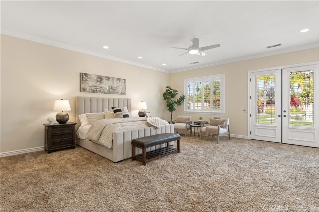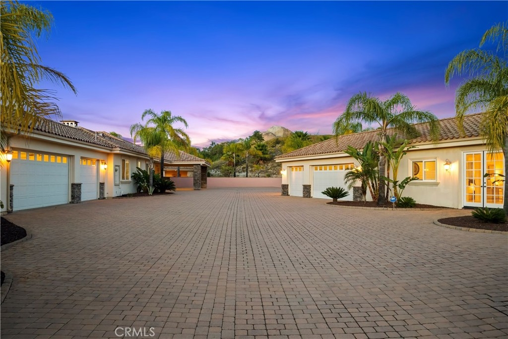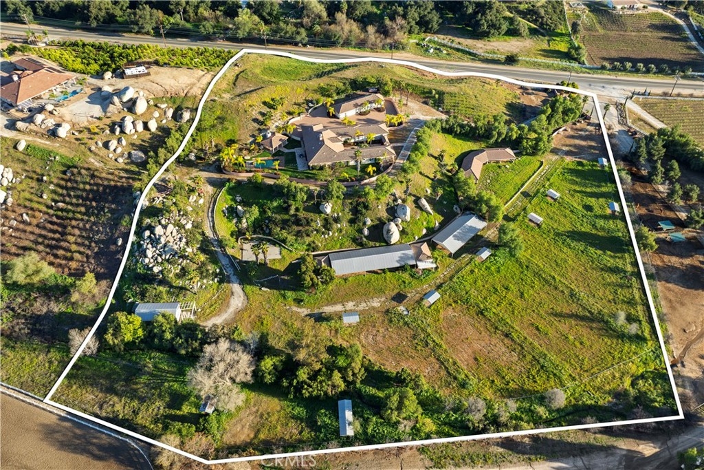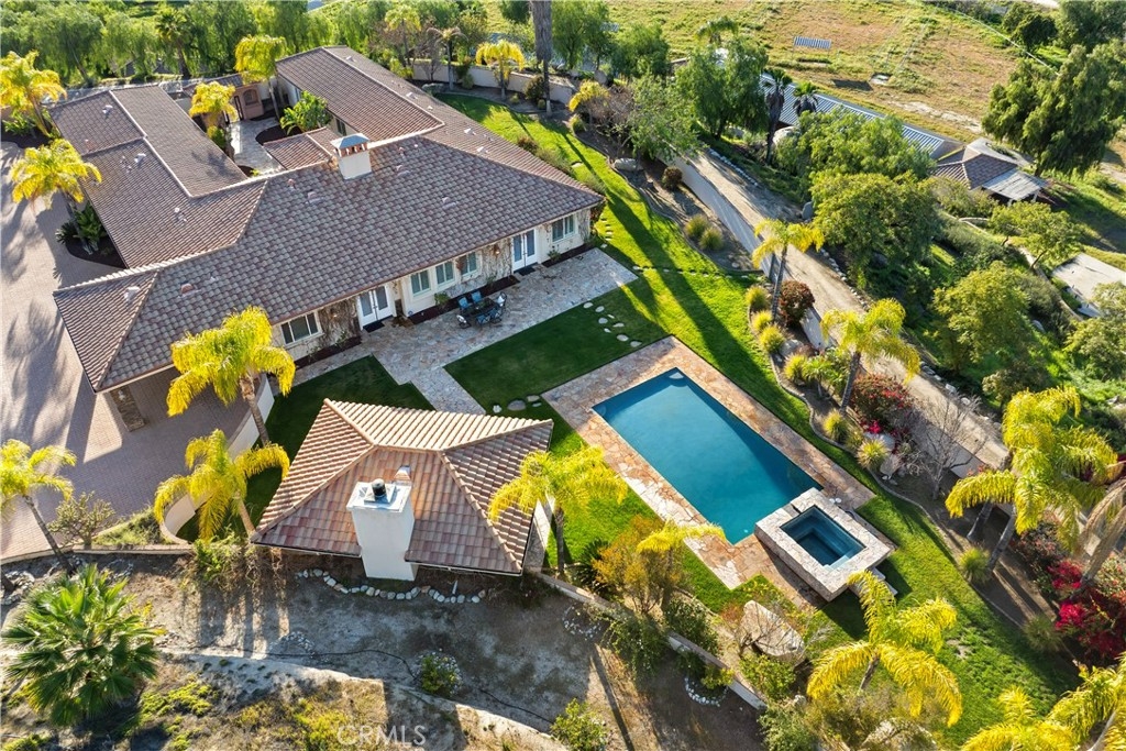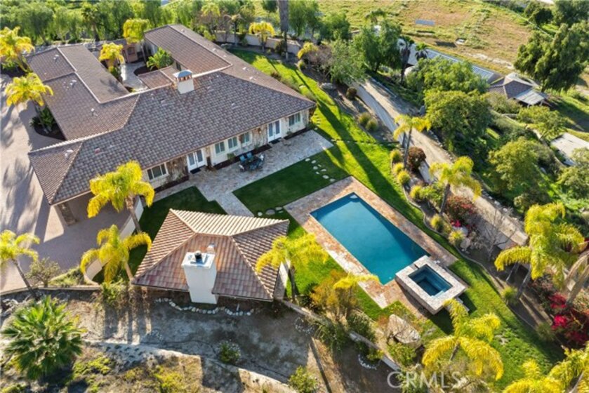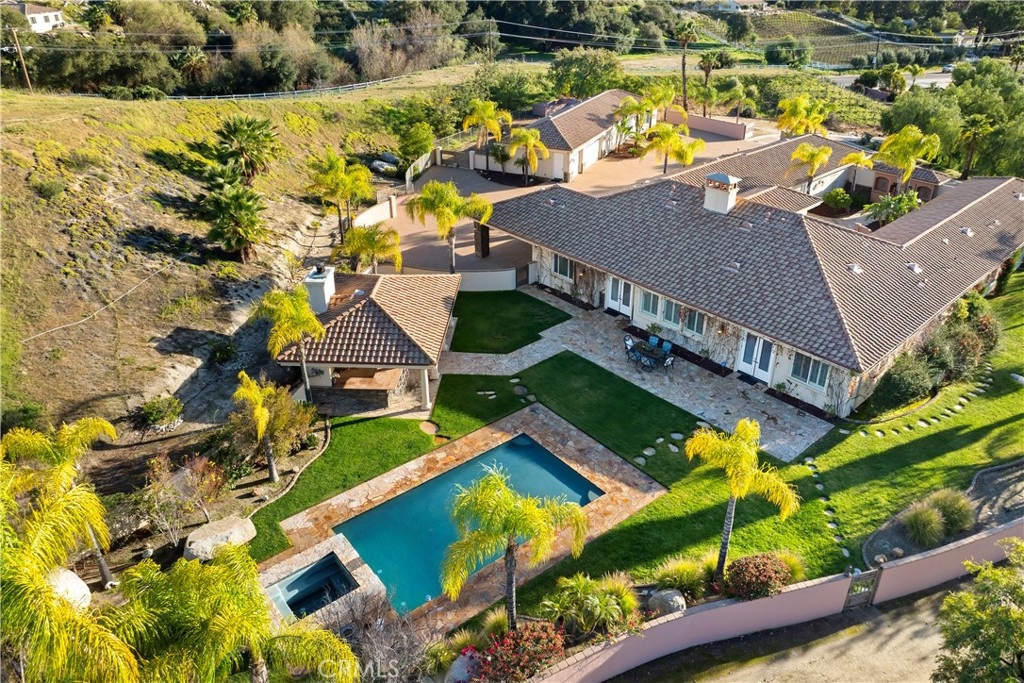 This is a rare opportunity to own a private Wine Country estate that seamlessly blends natural beauty, usable land in one of Temecula’s most desirable locations.Wake up to hot air balloons rising in the early morning sky and unwind with breathtaking sunsets over your own private estate! Spanning approximately 5,507 square feet, this custom-built 5-bedroom, 5-bath residence sits atop 9.15 acres of scenic land. A detached 1,000-square-foot guest villa (1 bed, 1 bath ADU) with ideal flexibility for multi-generational living, guests, rental income, or on-site staff.A long custom paver driveway leads up the hill to the home, creating a grand sense of arrival. At the entrance, you’re welcomed by an expansive courtyard-style setting (atrium), allowing natural light to pour into the surrounding rooms and enhancing the home’s bright, airy feel throughout.Inside, soaring high ceilings and crown molding elevate the space. The open-concept kitchen and family room form the heart of the home, designed for both entertaining and everyday living. The chef’s kitchen features high-end stainless steel appliances, including matching Viking refrigerator and freezer units, a Fisher & Paykel 6-burner range, and a Thermador oven. The kitchen opens seamlessly to the family room with custom cabinetry and a fireplace, while formal living and dining rooms with elegant spaces to host guests.The bedroom layout is thoughtfully designed for privacy and comfort. In addition to the magnificent primary suite, two secondary bedrooms share a well-appointed Jack-and-Jill bathroom, while two additional bedrooms each enjoy their own private en-suite bathrooms. A spacious loft with high ceilings—currently set up with a ping pong table—serves as a versatile entertainment area, perfect for a game room, media space, or lounge. Both the primary suite and the living room feature French doors that open directly to the backyard, where you can enjoy the custom pool and beautifully designed BBQ area—ideal for relaxing afternoons or hosting unforgettable gatherings under the Wine Country sky.Equestrian facilities include horse stalls, a mare motel, barns, and pasture areas. With six garage spaces, abundant additional parking, and room to accommodate multiple RVs, this property is also a dream for car collectors and outdoor enthusiasts.A true Temecula Wine Country lifestyle, versatility, privacy, and long-term value in one extraordinary setting.
