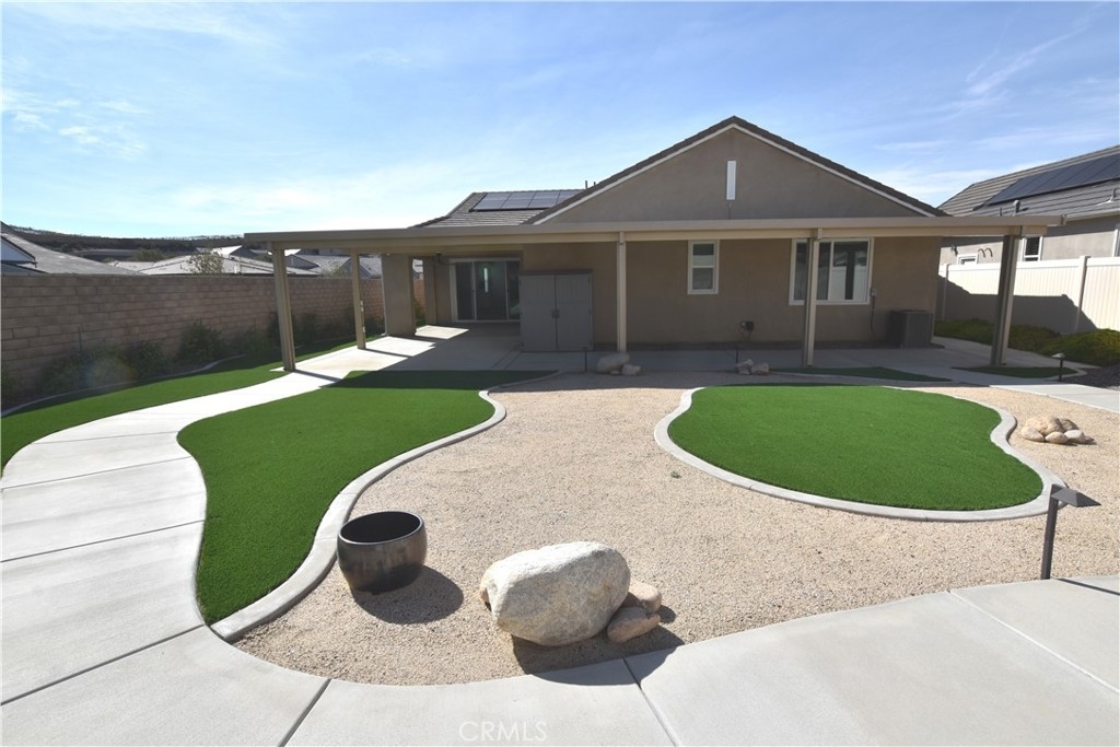 Turnkey home located on a cul-de-sac in the highly desireable, gated 55+ Community of Somersbend with paid for solar and a huge fully landscaped low-maintenance yard. The home features a great room a family room and dining area which flow seamlessly into the kitchen as well as 3 bedrooms and 2.5 bathrooms and a huge alumnawood patio with fireplace and multiple fans. The kitchen is a chef’s delight with a large quartz center island and a walk-in pantry and Stainless steel appliances including a fridge. The master suite features a generously sized walk-in closet and a spa-like bathroom with an oversized walk-in shower as well as a linen closet. Two additional bedrooms and a full bath provide comfortable space for guests or a home office. The laundry room has a sink as well as plenty of additional storage space as well as a counter for folding clothes. The backyard retreat with an extensive aluminum patio cover featuring an outdoor gas fireplace and fans also features low-maintenance landscaping with artificial turf and concrete walkways. There is also a convenient storage shed. Esplanade has exclusive resort-style amenities, including a clubhouse, pool, fitness center, and more. All this, just minutes from Temecula Wine Country, shopping, and dining. This home perfectly blends comfort, convenience, and community.