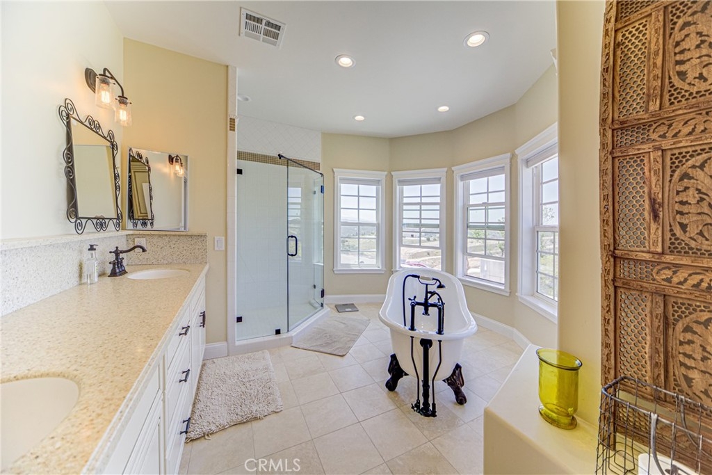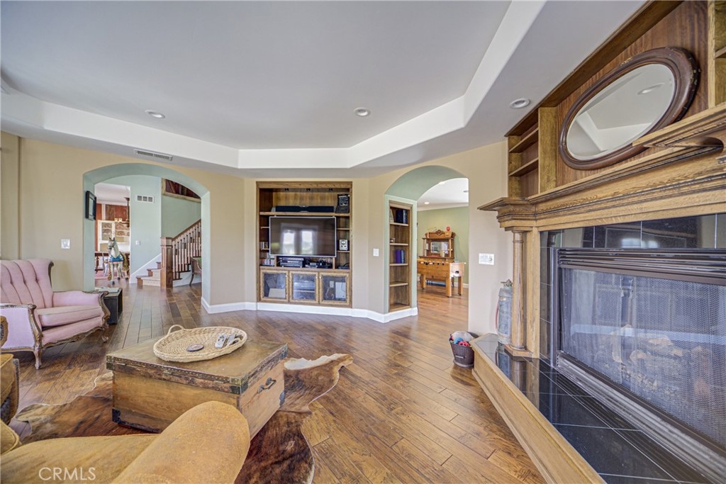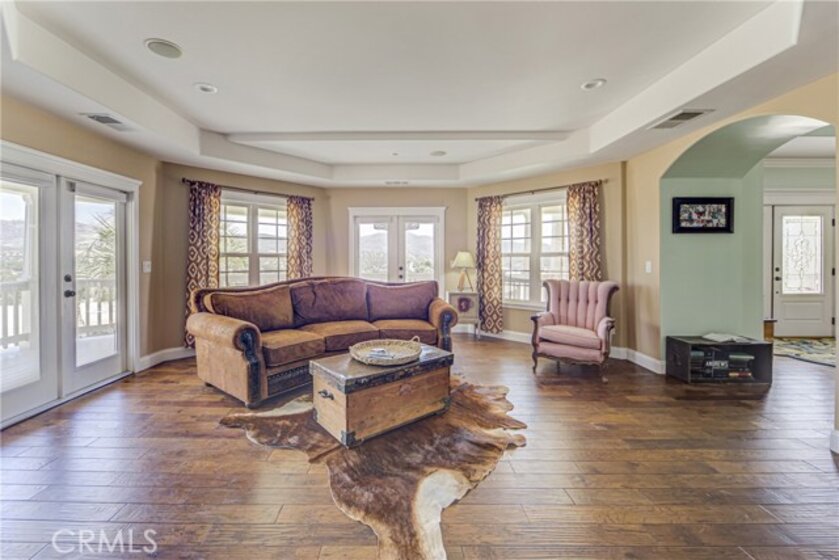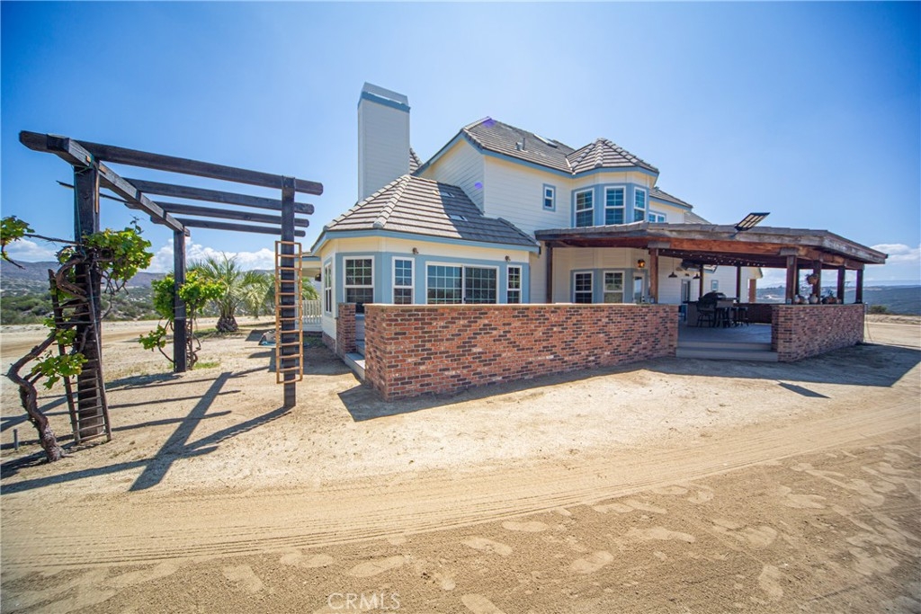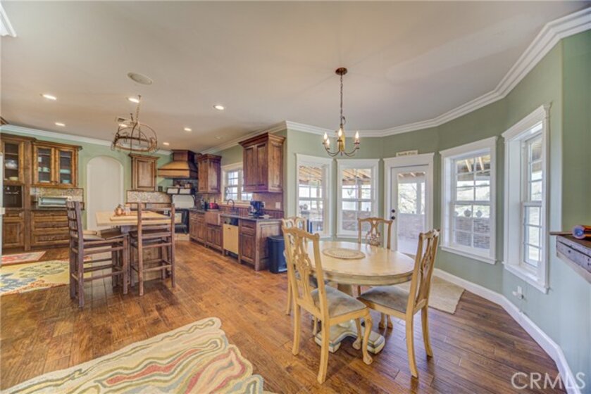 One of a kind opportunity to own a unique estate with TWO LARGE houses with over 6,500 square feet of living space on 10 acres. Nestled in the heart of Temecula’s highly desirable horse country, this hillside custom home features features 6 bedrooms, 5 bathrooms in a 4,000 square foot Victorian home with a wrap around porch and designer touches throughout. The second home is a 2,500 with five bedrooms, three bathrooms and a separate garage. There are also two RV garages/workshops as well as two extra graded pads ideal for horse facilities or a car barn. The dramatic entry opens to a grand staircase and formal living and dining rooms. There is a huge party room that opens to the breakfast area and kitchen with a butler’s pantry. The primary bedroom features numerous windows, a private entry area, a clawfoot tub, and a dual-head shower. There is also a private loft/reading room retreat above the primary suite. The main home includes a downstairs bedroom and full bathroom, plus a guest half bath. Upstairs includes an additional bedroom with en-suite bath, three more bedrooms, and a secondary bathroom, accessible via a second staircase in the guest wing. Outdoor features include a large covered entertainment patio and wraparound porch. The second home is approximately 2,500 sq ft with 5 bedrooms and 3 bathrooms, raised garden beds, a spacious kitchen with large dining area, living room with fireplace, and a separate dining room with slider. The property also includes an oversized garage, a car lift, extra-high ceilings, and a tractor included in the sale. Two large graded pads offer additional potential for equestrian use or additional structures.