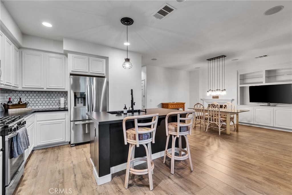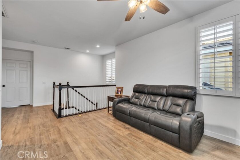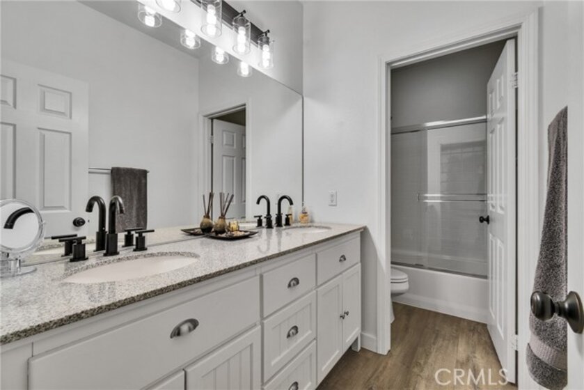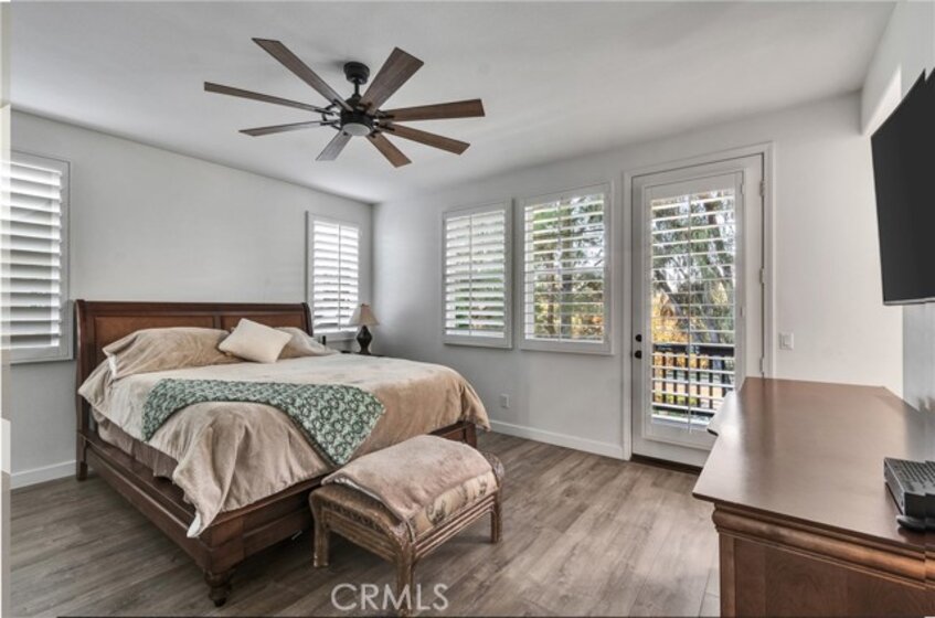 This lovely turnkey fully upgraded 3-bedroom, 3 baths with 2037 sq ft offers a good size loft/bonus room, which is perfect for an office, gym or media room or can easily be a 4th bedroom located in the very desirable Harveston Lake community. It has a formal living room and dining area plus a family room with built-in media cabinet and fireplace off the kitchen which is currently just used as a dining room. Beautiful new luxury vinyl flooring throughout, neutral designer paint and plantation shutters. Custom designed kitchen has granite countertops, updated backsplash, Whirlpool stainless steel appliances including a dishwasher, microwave, a farmhouse sink with upgraded faucets, and a teardrop sink light. There is an abundance of cabinets and storage space. Custom designed powder room includes a new vanity, new mirror and new updated light fixture. Master/primary bedroom suite has its own private balcony to relax on and a large walk-in closet with a custom shoe cabinet. Master/primary bathroom has a large walk-in shower, separate soaking tub, new custom vanity with double sinks, new faucets and new light fixtures. Both additional bedrooms two and three are spacious shown with queen size beds and have nice size walk in closets. The guest or hall bathroom has also been remodeled with upgraded dual sink countertop, new faucets and light fixture. Additional upgrades include ceiling fans and LED lights throughout the home. Quiet garage door opener has been added and the whole exterior has been painted. Backyard is private with no neighbor behind you, nicely landscaped and surrounded by trees with covered patio and cement walkways for minimal care. PAID OFF SOLAR is transferrable and means less cost for all things electric. The amazing Harveston community has a 17-acre lake for all to enjoy with lighted walking paths, gorgeous green belt and park areas, an Olympic size swimming pool/spa and community clubhouse where there are so many planned activities throughout the year for ALL ages you won't want to miss. Conveniently located close to schools, shops and freeways. A great place to call home for all stages of life! Note that Buyer pays for one time Harveston enhancement transfer fee which is 1/4 of 1% of the agreed sales price.