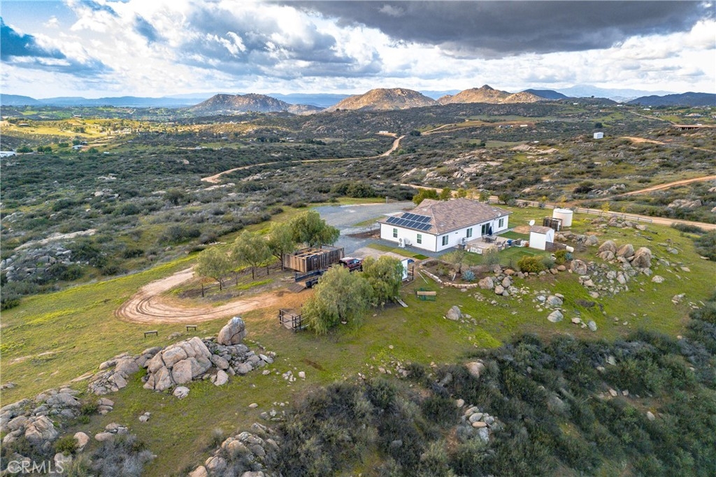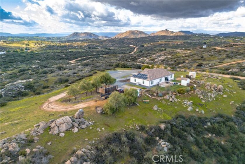 A rare opportunity to own just over 20 acres in Temecula with breathtaking valley views and a fully off-grid home built in 2015. Step through grand entry doors into a bright, open-concept living and kitchen space designed for effortless flow and entertaining. The split-wing floor plan offers a private primary suite on one side of the home, with secondary bedrooms on the other—ideal for comfort and privacy. This 3-bedroom, 3.5-bath, 2,186 sq ft residence delivers true energy independence with a solar system featuring a brand-new lithium battery, plus a private well with strong water pressure. The expansive acreage opens the door to endless possibilities—additional homes for income, garages or workshops, horse corrals, or your own private retreat. Properties like this rarely hit the market, and this one is competitively priced to sell. Opportunities with this level of land, views, freedom, and self-sufficiency won’t last long.