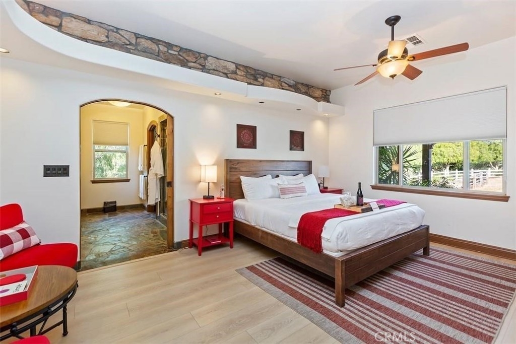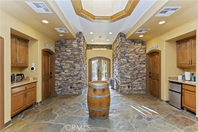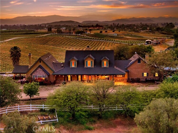 Welcome to Peppertree Lane Ranch, a rare 7-acre vineyard-wrapped retreat where privacy, luxury, and effortless indoor/outdoor living come together. Morning hot-air balloons drift overhead; evenings bring quiet sunsets over the vines. Three turnkey residences, resort-style amenities, and extensive equestrian facilities create a setting unlike anything else in Temecula Valley Wine Country.THE MAIN RESIDENCE (4bd/4ba) blends custom stone, wood, and ironwork with true SoCal indoor/outdoor living. A chef’s kitchen with Viking appliances and oversized island opens to an accordion-glass wall for seamless entertaining. Enjoy a pool and spa framed by vineyard views, a spa-style primary suite with covered patio, a second master suite with its own turfed lawn, and a three-car garage.THE COTTAGE (2bd/2ba) near the property entrance offers its own garage, grill area, hammock, bocce court, and picnic space – perfect for guests or weekend getaways.THE VILLA building provides four individually keyed king suites with a shared lobby, each with custom stone grotto showers. The adjoining recreation area includes grills, picnic tables, fire pit, and bocce court.*** Horse lovers will appreciate 15 Stalls with covers, very well built, varying sizes w/a minimum of 18’ x 20’, 60' round pen, a lighted arena (225’ x 125’)with sound and covered seating, and privately gated access to miles of vineyard trails.*** Plenty of room for vineyards, farm animals, organic gardens, fruit trees or recreation areas.*** Smart-enabled access, mesh WiFi throughout, and exceptional multi-use potential – personal estate, family compound, equestrian center, boutique hospitality, wellness retreat, or creative hideaway. Offered unfurnished; furnishings available.** This property MUST BE EXPERIENCED IN PERSON to appreciate its setting, craftsmanship, and versatility; schedule a tour today.