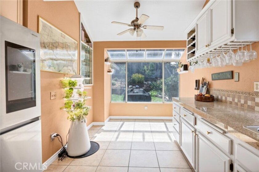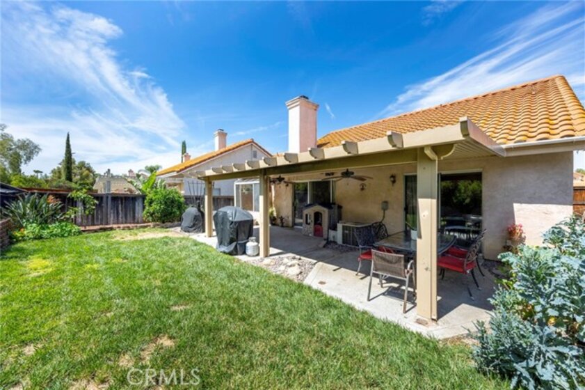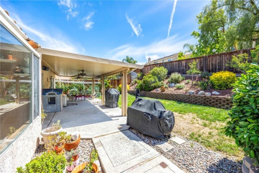 Perfectly situated across from a small cul-de-sac, you'll find this charming three bedroom, single level home with a backyard for the gardening enthusiast and those seeking peaceful and quiet outdoor enjoyment! As you enter the home through the front door you will notice the high ceilings throughout offering a sense of space and openness. The dining room and living room offer a "great room" layout feeling while still providing separation for traditional styling. The living room has vaulted ceilings and a cozy wood or gas burning fireplace with shelving for decor. The kitchen is airy and bright with a beautiful bay window and a potential banquette style dining area. Plenty of storage space, inviting natural light, and functionality with stainless steel appliances make this updated kitchen a lovely place to create memories over delicious meals and drinks. Two darling bedrooms and their shared full bath are situated in the front of the home opposite from the primary bedroom offering a split style bedroom layout. Your primary bedroom is your retreat with access to your peaceful and parklike backyard! The primary en-suite offers a walk-in closet and ample storage in the vanity. A custom, built-in tech desk/command center just outside the primary bedroom provides a great place for organizing day to day tasks or working from home. Don't forget the garage - the storage system in the ceiling of the garage is next to none and gives you easy access to storing whatever your hobby/holiday decor heart desires, and a newly installed water heater keeps the home running efficiently! Out in your backyard you will unwind amongst fruit tress, lush green grass, grapevines, a raised garden box full of healthy greens, drought tolerant landscaping to endure warm and dry summers, an alumawood style patio cover, and a storage shed that is equipped with electricity in the courtyard off of the dining area. This neighborhood is loved by residents for its parks, 2 pools and spa, pickleball, tennis, and basketball courts, LOW HOA and LOW TAXES, easy accessibility to shopping, Promenade Mall, wine country, the 15 FWY, Harveston for walks around the lake and fishing, the newly completed bike/pedestrian path, walking/riding distance to Chaparral High School & Day Middle School. Opportunities like this don't come along often, the only thing missing is you!