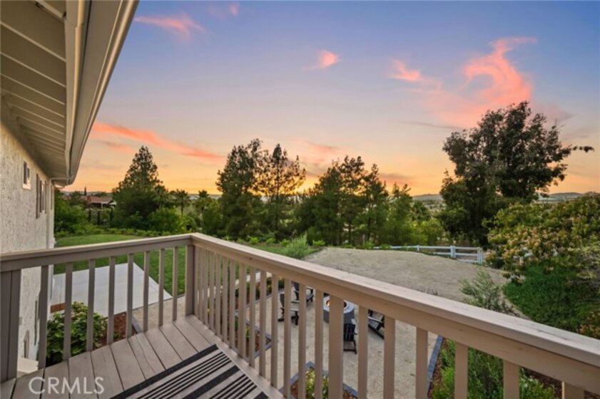 INCREDIBLE VIEWS FROM THI MEADOWVIEW HOME!! BEAUTIFULLY REMODELED & PAID SOLAR! Sitting on nearly 3/4 of an acre of space, this Temecula home is a rare find. Step inside to an open-concept floor plan framed by SENSATIONAL POSTCARD VIEWS that will take your breath away. The fully remodeled kitchen is a chef’s dream, boasting quartz counters, a sprawling island with barstool seating, a wine refrigerator, charming brick backsplash, floating shelves, hooded cooktop, soft-close cabinetry, a pot filler at the stove, and double ovens—every detail thoughtfully designed. Recent upgrades continue with new flooring, a fresh driveway, and a completely reimagined backyard featuring new irrigation, lush landscaping, a paver patio, fruit trees, and even your private vineyard. The kitchen flows seamlessly into a dining area with panoramic windows and a living room accented by a cozy fireplace and wood-slatted, beamed ceiling. 4th bedroom is located downstairs, perfect for a guest room or office. Upstairs, the primary suite features a walk-in closet, en-suite bath, and a private balcony, perfect for savoring the gorgeous California weather. Plus two secondary bedrooms and a secondary bathroom, and easy access to the spacious garage. Just minutes from shopping, dining, Wine Country, and all of Temecula’s best entertainment, this home blends luxury, character, and location into one irresistible package.