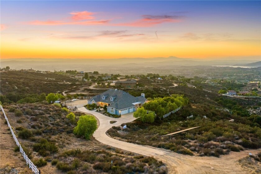 Welcome to this stunning single story custom estate perched high above Temecula’s Wine Country, offering unobstructed panoramic views of vineyards, Lake Skinner, hot air balloons, and sunsets. Spanning 4,562 sq ft, this 5 bed, 3.5 bath home was thoughtfully designed by its original owners and built in 2006 with an incredible floor plan and high end finishes throughout. You’re greeted by soaring ceilings, crown molding, and a direct line of sight to the sparkling pebble tech pool through oversized sliders. The formal living room features a fireplace, bar, and serene backyard views, perfect for entertaining. The right wing offers a formal dining room, private office or 5th bedroom, bathroom, and a massive kitchen that opens to the dining nook and family room with another fireplace. The chef’s kitchen boasts expansive counters, a large island with bar sink, six burner cooktop, double ovens, built in fridge, and walk in pantry, plus abundant storage and an oversized laundry room. The left wing includes four bedrooms, including the luxurious primary suite with its own fireplace, backyard access, and oversized en-suite with huge walk in shower, jetted soaking tub, and large closet. Two bedrooms share a dual sink bath, while the fourth is a junior suite with its own full bath. This home has 2x6 framing with full insulation, 2 recently replaced on demand water heaters, A Halo whole house water filtration, central vacuum with floor sweeps (kitchen, primary bath, laundry) plus a garage car kit, dual AC units with independent zoning (including office control), and recently replaced AC units and built in fridge. Energy efficiency shines with a ground-mounted 35-panel solar array prepaid through 2035 and a solar pool heater. Benefit from a low ~1% tax base and no Mello-Roos or water-bond assessments, the bond was paid in 2007. The oversized 3-car garage offers ample space for storage or toys. There’s also an unfinished attic with 9-ft ceilings accessed via telescoping ladder in the pantry. Step outside to an entertainer’s backyard featuring a pool & spa with incredible sunset views, lush lawn with putting green (former sand trap replaced with mulch and new planting), and a large flat pad ideal for an RV garage, equestrian setup, or future ADU—all oriented toward the views. Set in one of Wine Country’s most desirable and private pockets, this home perfectly blends luxury, function, and jaw-dropping views.