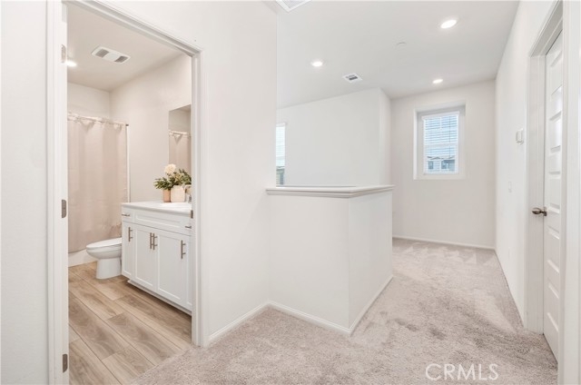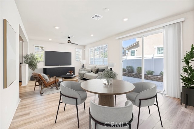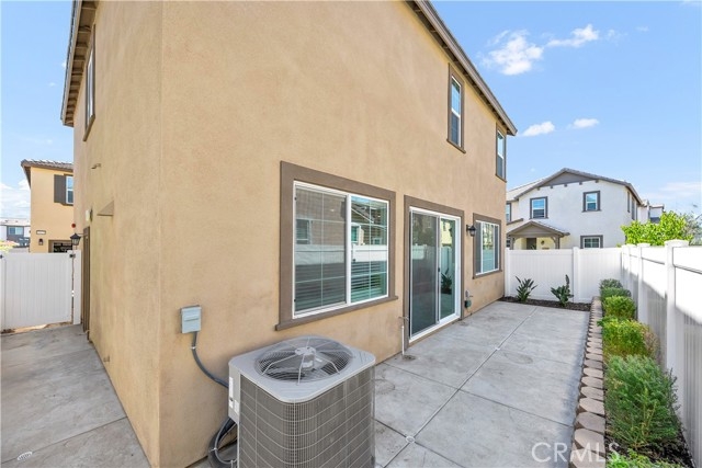 Welcome to this beautiful home in the desirable community of Heirloom Farms in Temecula. Featuring OWNED SOLAR, this 3-bedroom, 2.5-bath residence combines modern finishes with low-maintenance living. Inside, you’ll find LVP flooring throughout the main level and cozy carpet upstairs. The open kitchen is beautifully appointed with white shaker cabinets, granite countertops, stainless steel appliances, and recessed lighting, making it the heart of the home. The layout is enhanced with pre-wiring for ceiling fans and a tankless water heater for added efficiency. Upstairs, the primary suite offers a relaxing retreat with dual sinks, quartz countertops, and a spacious walk-in closet. Two additional bedrooms and the conveniently located upstairs laundry room provide everyday comfort and functionality. The backyard has been thoughtfully customized with concrete hardscaping, charming planters, and a drip irrigation system, perfect for relaxing or entertaining. Located just steps from the community pool and clubhouse, this home offers both comfort and convenience. Enjoy easy access to freeways, shopping, dining, and Temecula’s wine country, all while benefiting from a low HOA. With its prime location, modern amenities, and move-in readiness, this is a rare opportunity you won’t want to miss!