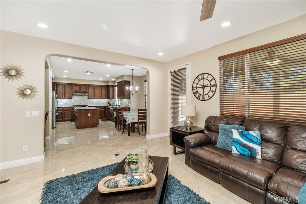 Nestled in the heart of Temecula's prestigious Harveston community, this expansive two-story home offers 5 bedrooms and 3 bathrooms, providing ample space for both relaxation and entertainment. The thoughtfully designed floor plan includes a convenient downstairs bedroom and full bathroom, ideal for guests or multi-generational living. Upon entering, you're greeted by a welcoming foyer that leads to formal living and dining areas, perfect for hosting gatherings. The gourmet kitchen boasts granite countertops, stainless steel appliances, and a spacious island, seamlessly flowing into the cozy family room with a fireplace. Upstairs, the luxurious master suite features a spa-like en-suite bathroom with dual vanities, a soaking tub, and a walk-in closet. Three additional bedrooms and a 2 full bathroom complete the upper level. The backyard serves as a private oasis with a covered patio, fruit trees, and ample space for outdoor activities. Residents of Harveston enjoy unparalleled amenities, including a 17-acre lake with walking paths, a community clubhouse, a junior Olympic-sized pool, spa, splash park, and a 19-acre sports park equipped with lighted baseball diamonds and soccer fields. The neighborhood also offers dedicated walking and biking paths, multiple parks, and is within walking distance to top-rated schools such as Ysabel Barnett Elementary and Chaparral High School. Experience the perfect blend of luxury and community living in this exceptional Harveston home.