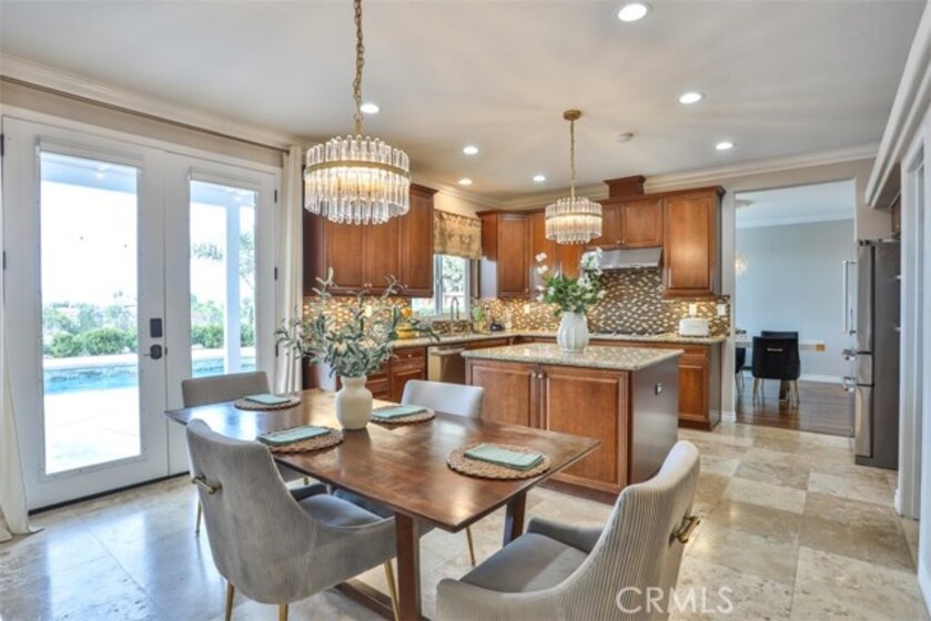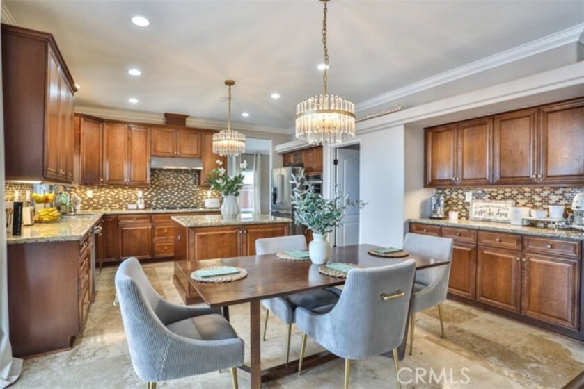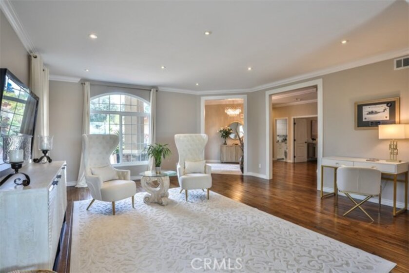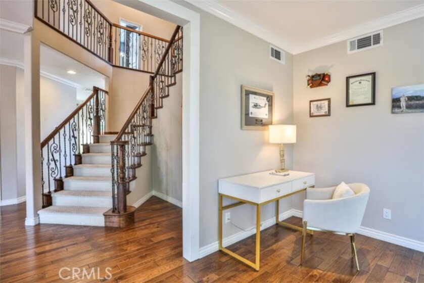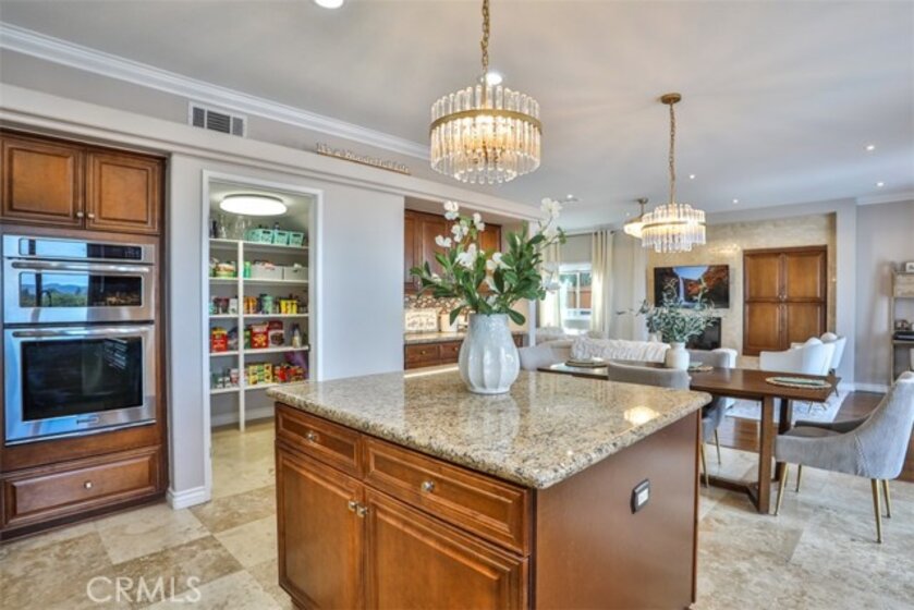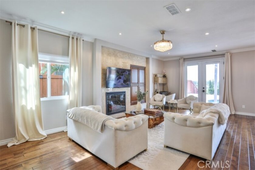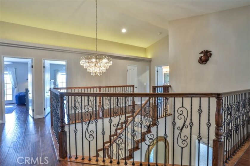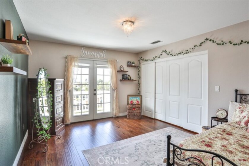 Elegant, Sophisticated and Spacious Temecula Residence in Quiet Neighborhood. Inviting Curb Appeal and Charming Water Fountain Lead to Beautiful Double Door Entry. Impressive Foyer, Living Room and Formal Dining Room are Flooded with Natural Light and Gorgeous Lighting Fixtures and Chandeliers Throughout the Home Add Sparkles and Glam. Stylish Kitchen Includes Center Island, Coffee Bar, Walk-In Pantry and Opens to Cozy Family Room with Fireplace and Two Sets of French Doors Leading to Wonderful Backyard. Main Level Also Includes Bedroom/Office, Bathroom and Laundry Room with Direct and Convenient Access to Backyard for Your Pool Guests. Elegant Staircase Leads Upstairs to Luxurious Primary Suite with Vaulted Ceilings, Oversized Soaking Tub, Separate Shower, Two Walk-In Closets with Organizers and Double Vanity. Two Additional Bedrooms Have Direct Access to Large Balcony to Enjoy Forever Views and Spectacular Sunsets. Unwind and Relax in Your Private Theater and Enjoy Endless Movie Nights on a Large Screen TV. Home Theater Can Be Easily Turned Into Second Master Bedroom, and it Includes Spacious Bathroom. Dedicated Home Office/Work/Study Space with Four Desks Is Also Located Upstairs. Enjoy Entertaining in Style; Sparkling Salt Water Pool, Spa and Oversized Patio. BBQ Island is Included. Step Down to the Orchard with Numerous Fruit Trees; Lemon, Lime, Orange, Apple, Asian Pear, Plum and Peach. Relax on Your Bottom Patio, or Treat Yourself to Yoga or Workout Session. Opportunity to Plant More Trees or Grow Your Garden on the Remaining Part of Your 1/3 Acre Lot. Close Proximity to Town, Excellent Schools, Shopping, Dining, Golf and Temecula Wine Country. No HOA, Low Property Tax Rate, Paid Solar System. This Truly Stunning Property is Perfect Blend of Luxury and Comfort. 3.25% Assumable Loan for Qualified VA Buyers. Welcome Home!